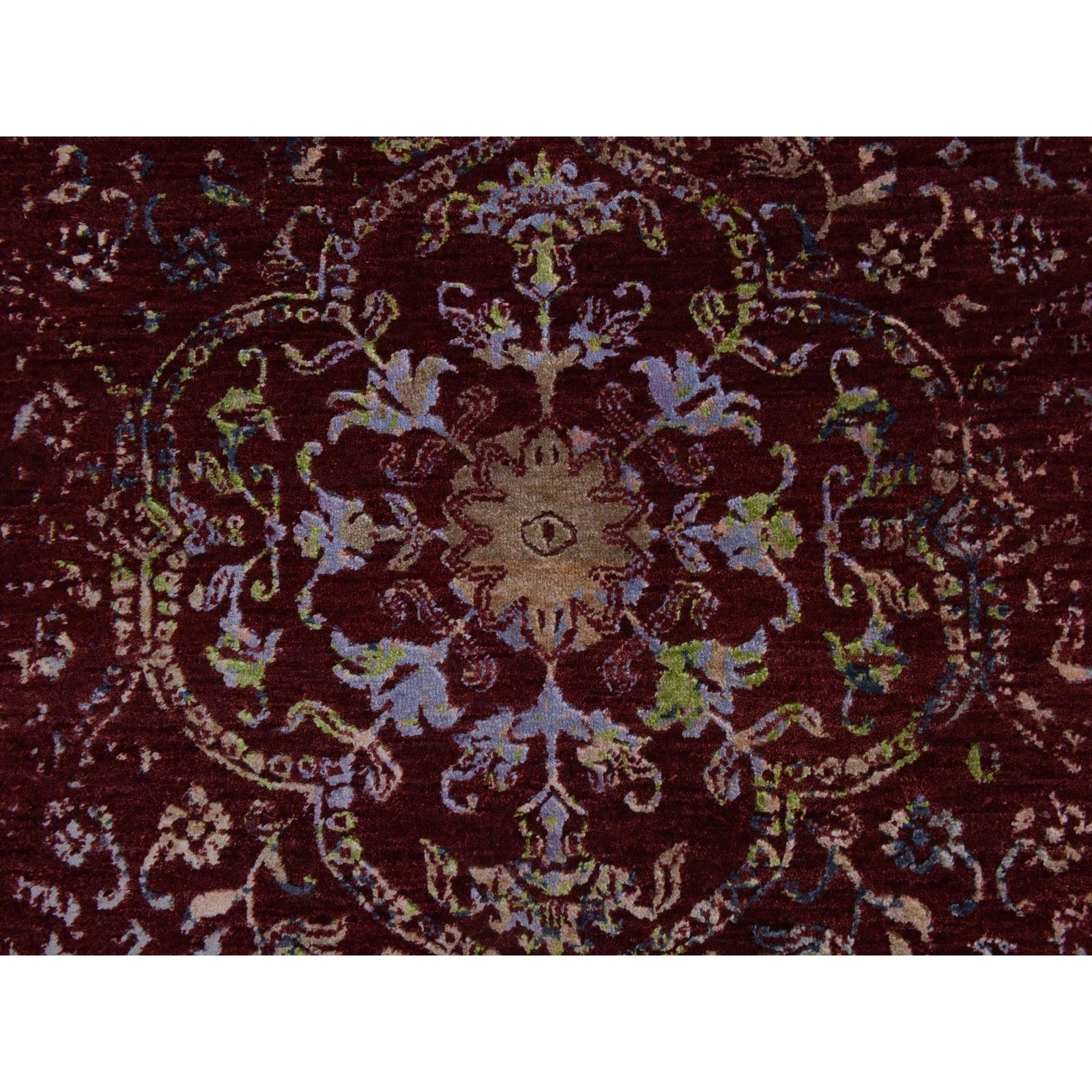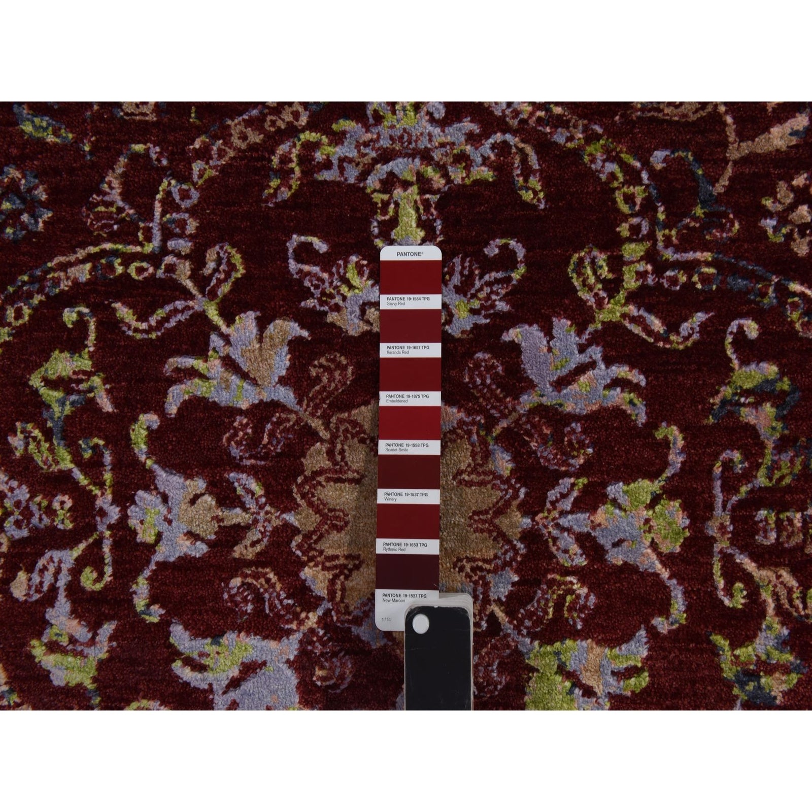 3'X5'1" Currant Red Floral Design Wool And Silk Hand Knotted Oriental Rug