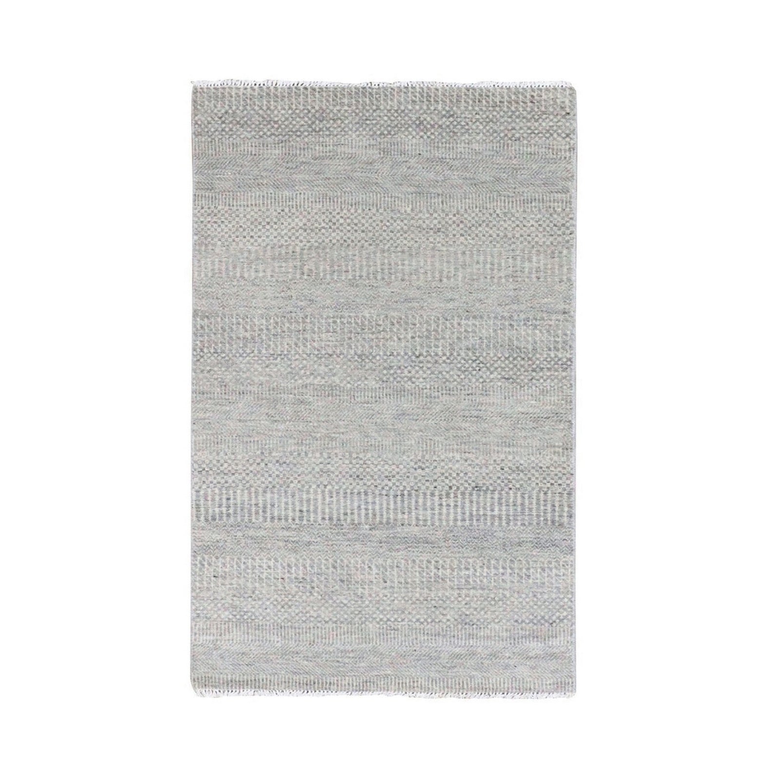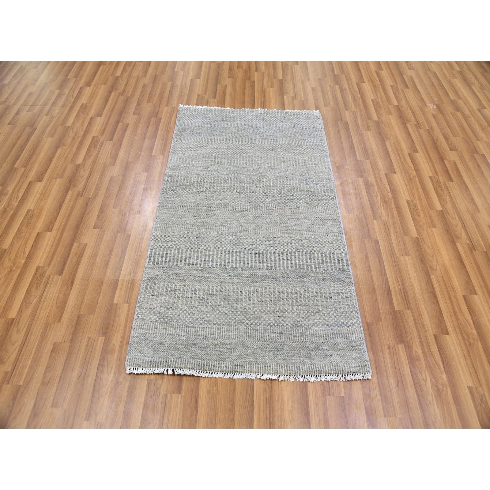 3'X5'3" Perfect Gray Undyed Wool Modern Grass Design Hand Knotted Rug