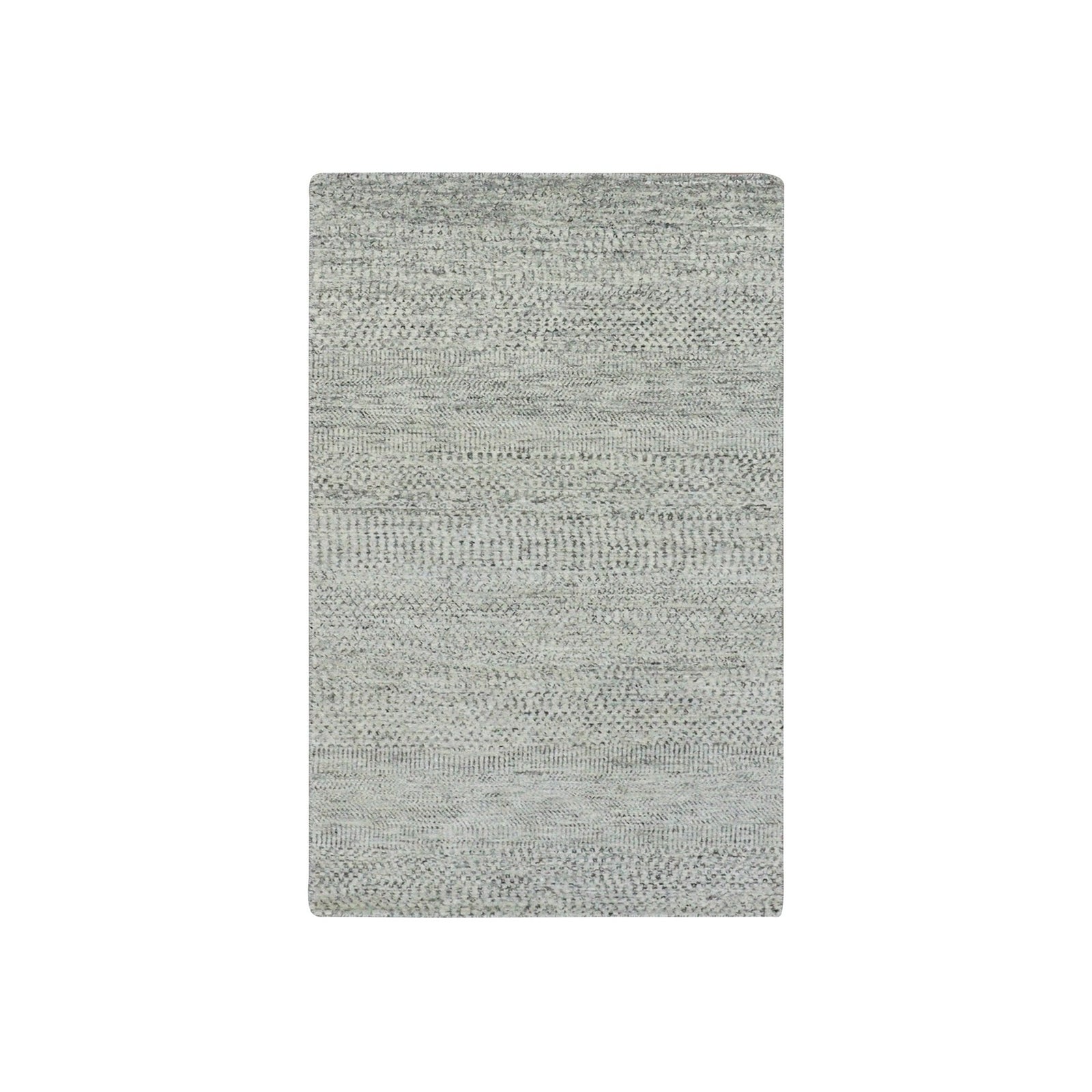 3'X5'6" Light Gray Modern Grass Design Undyed Pure Wool Hand Knotted Rug