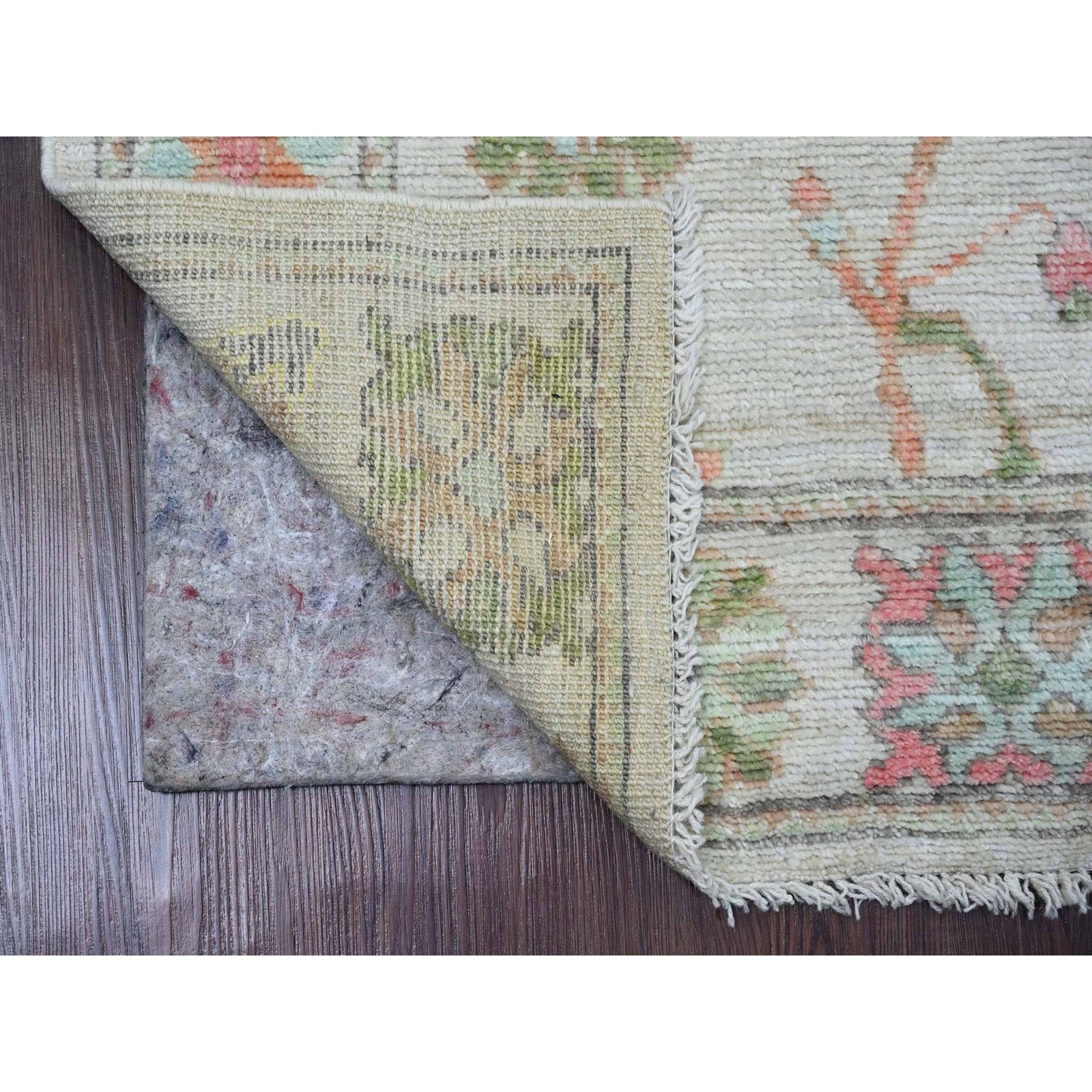 3'X6' White Afghan Angora Oushak Leaf Design Hand Knotted Wool Runner Rug