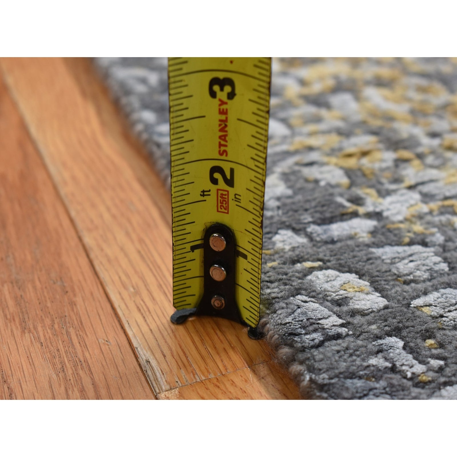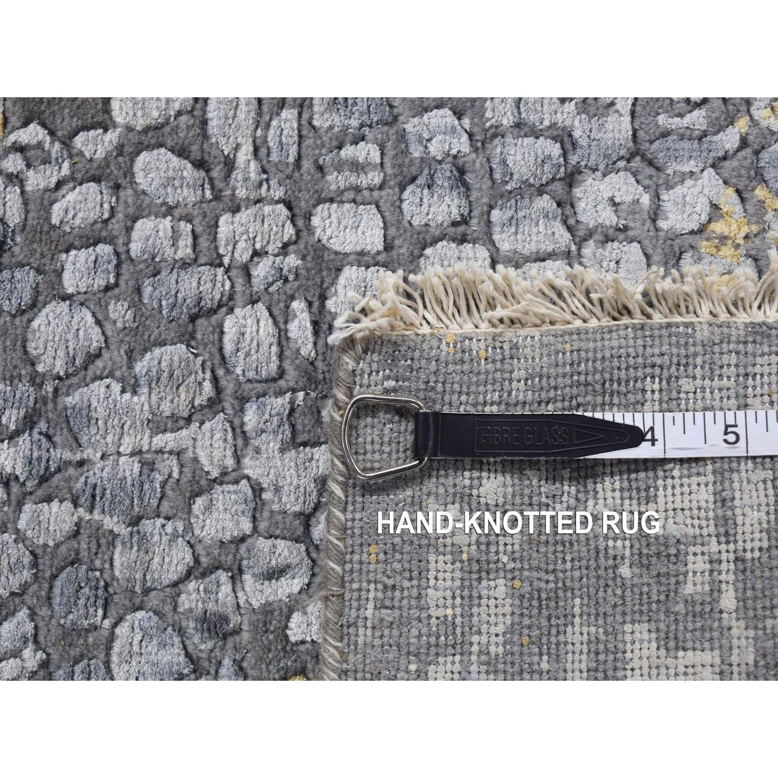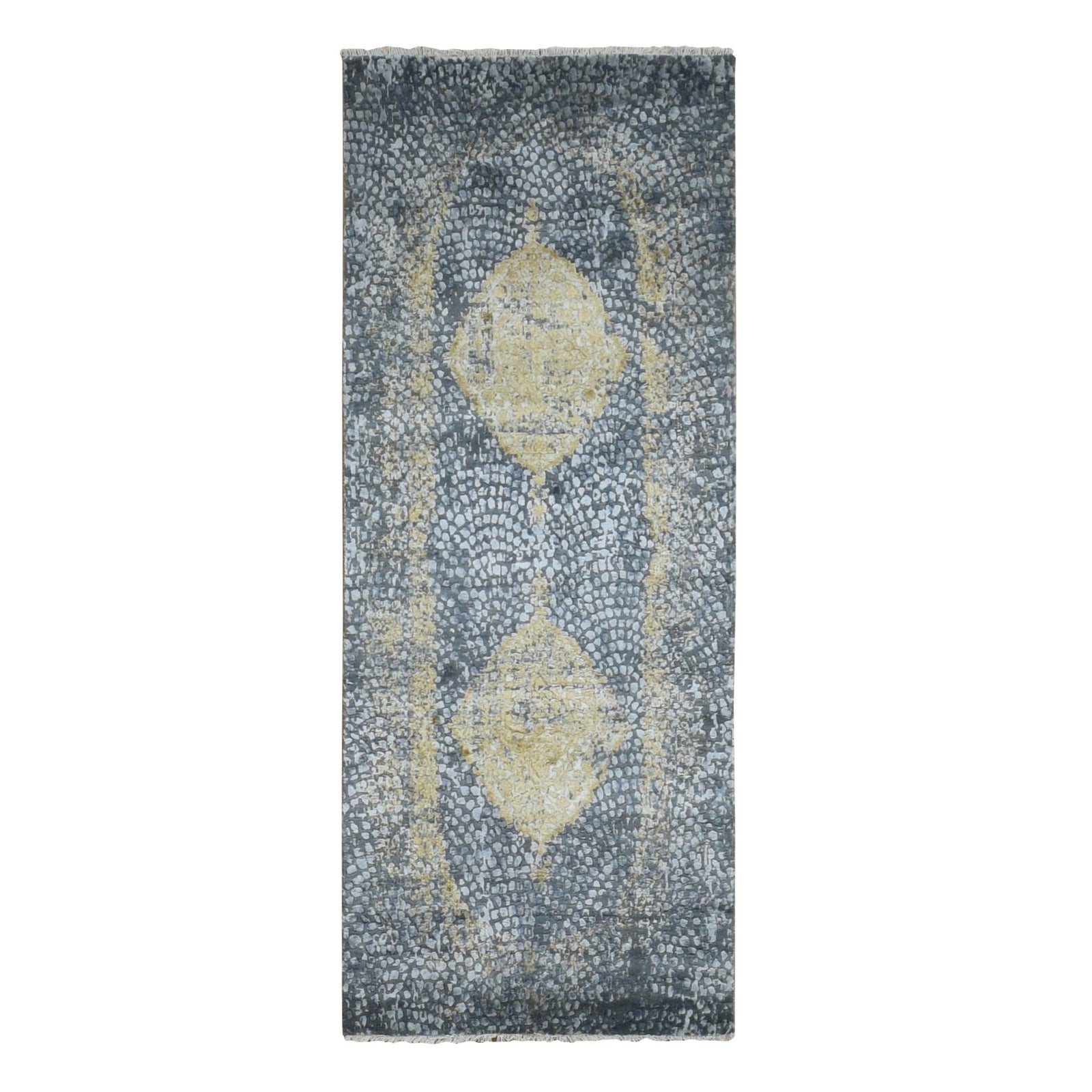 3'X8' Gray Zoroastrian Medallion Design Wool-Silk Runner Hand Knotted Rug