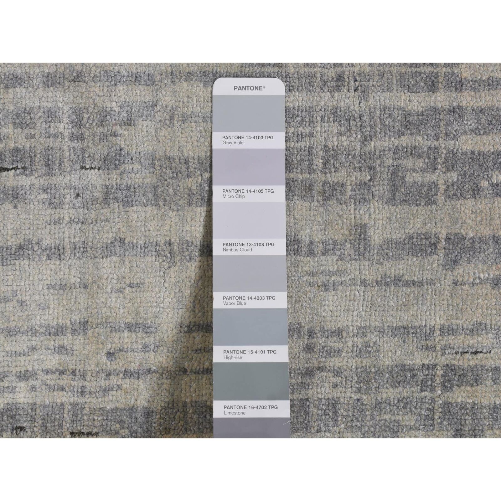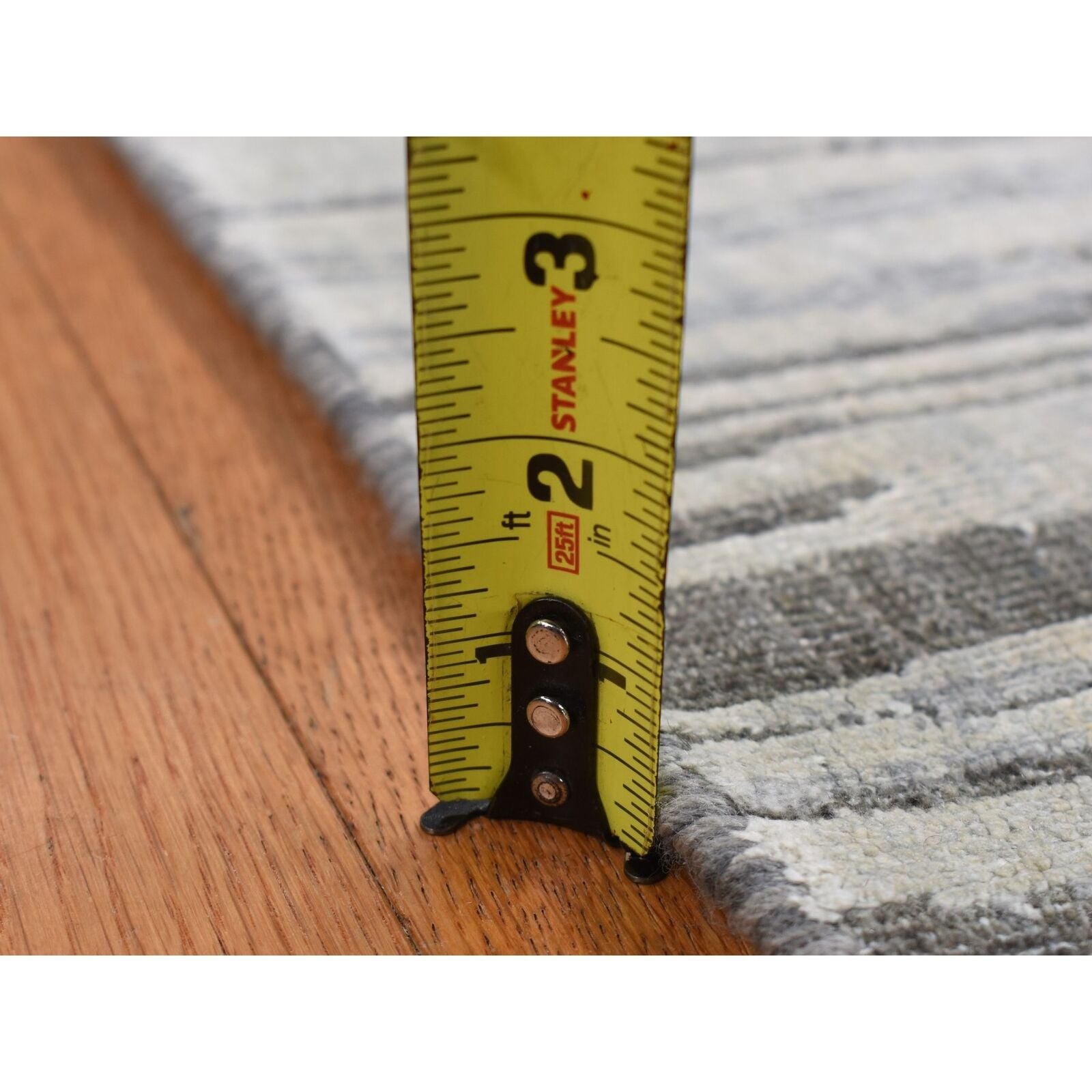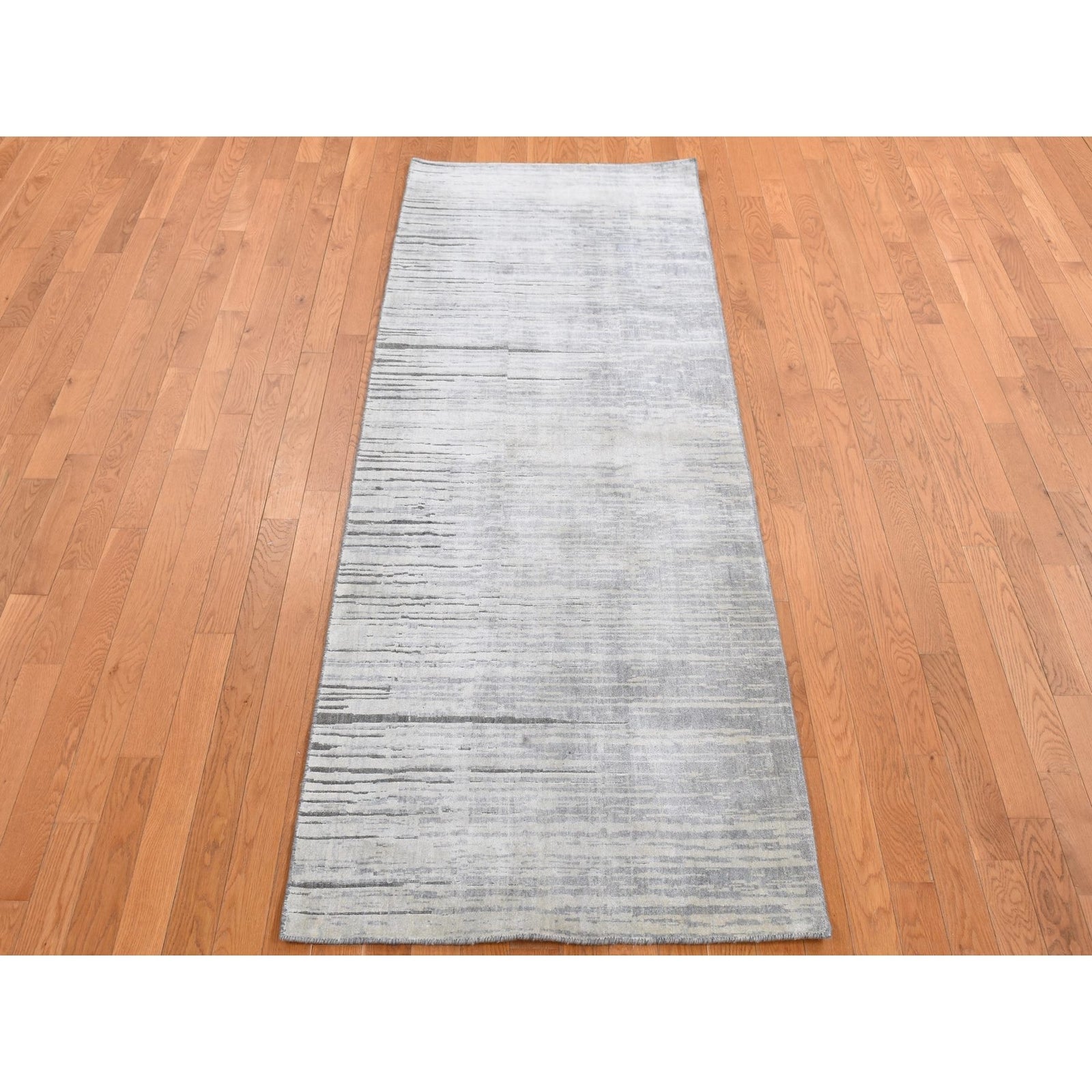 3'X9' Ash Gray Horizontal Ombre Design Pure Silk Hand Knotted Runner Rug
