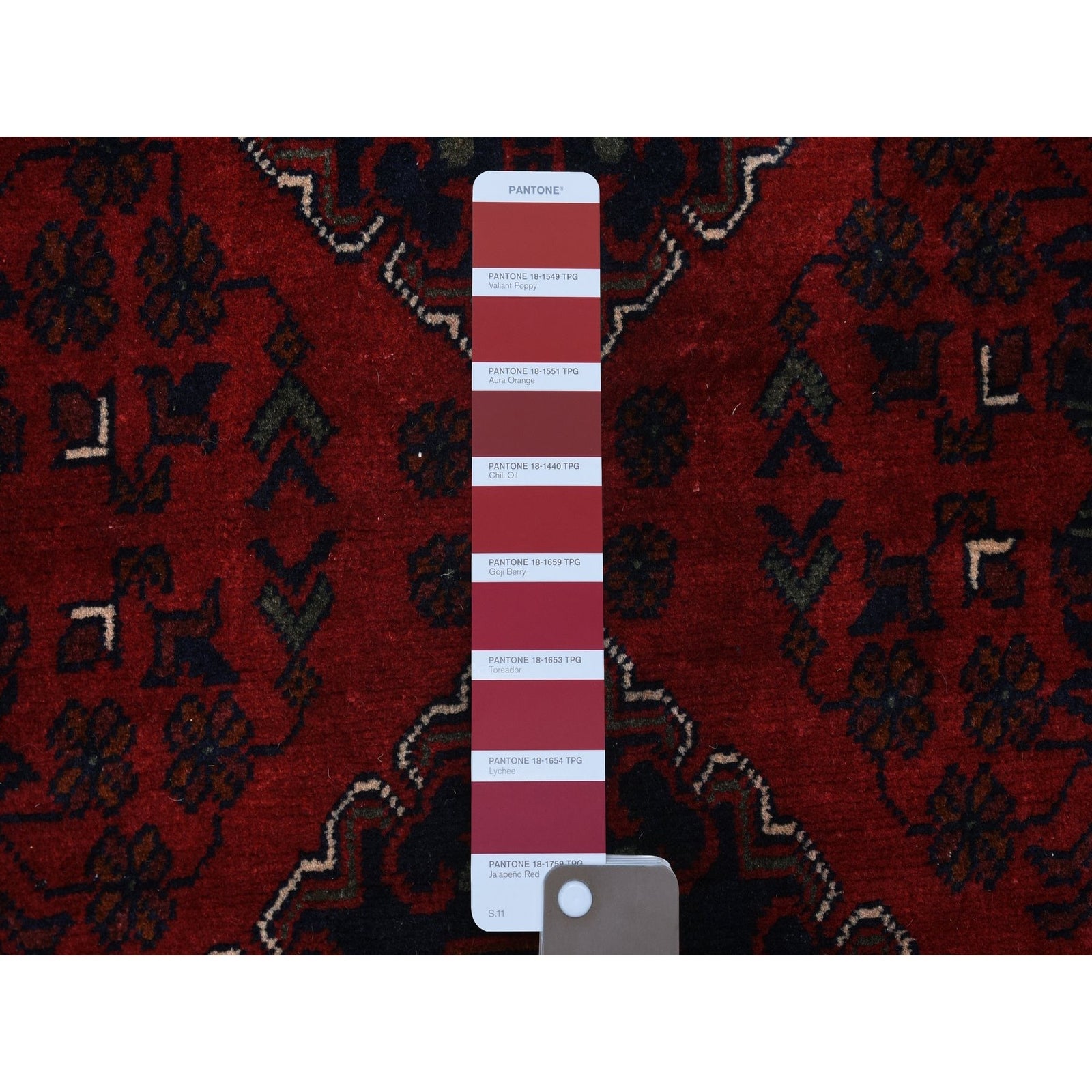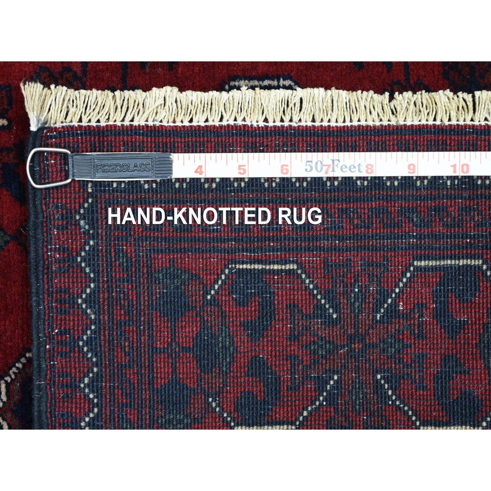 3'X9'6" Deep Red Shiny Wool Hand Knotted Afghan Khamyab Runner Rug