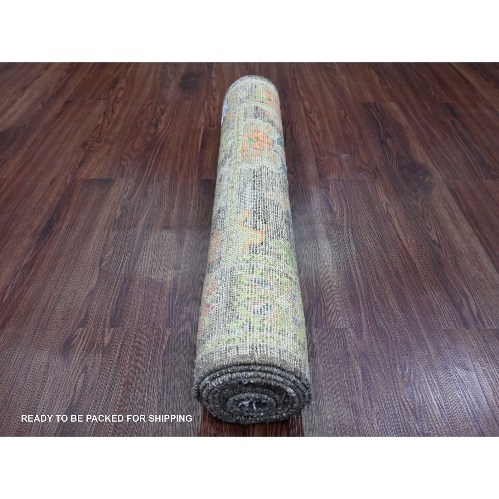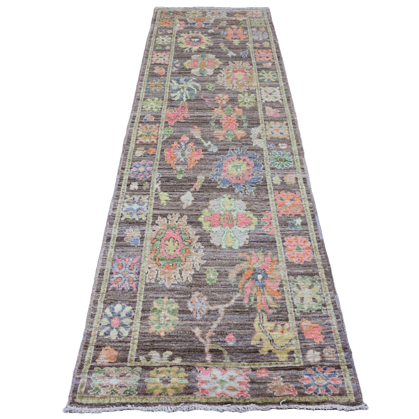 3'X9'8" Brown Angora Oushak Leaf Design Hand Knotted 100% Wool Runner Rug