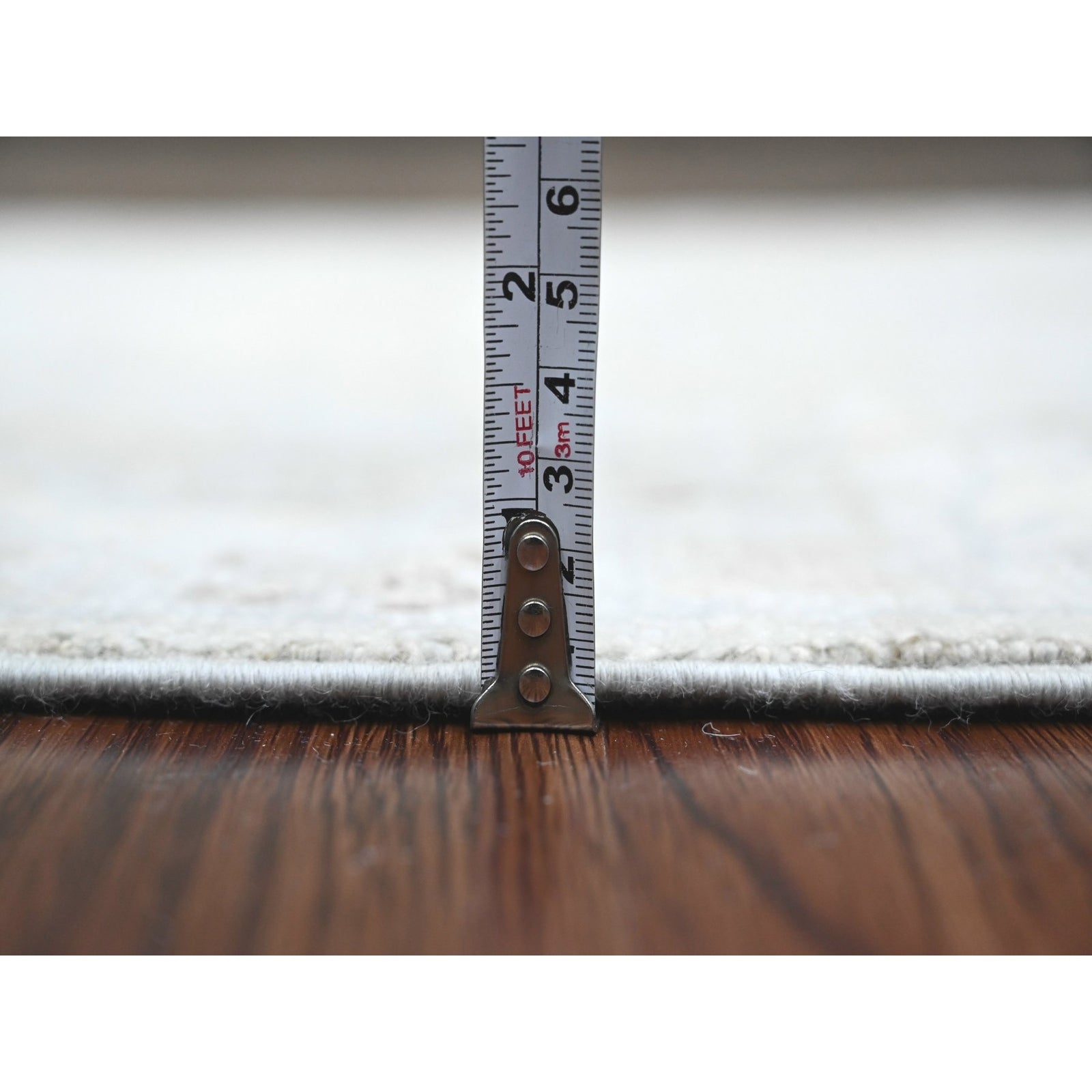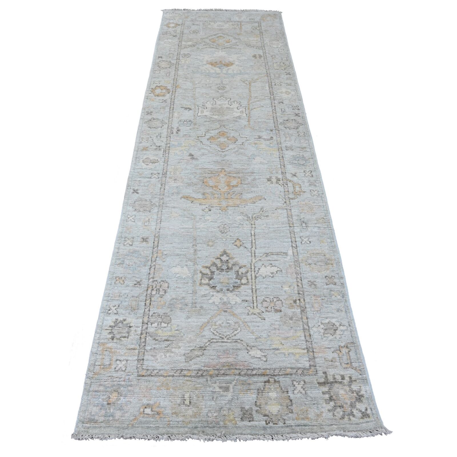 3'X9'9" Cloud Gray Afghan Angora Oushak Pure Wool Hand Knotted Runner Rug