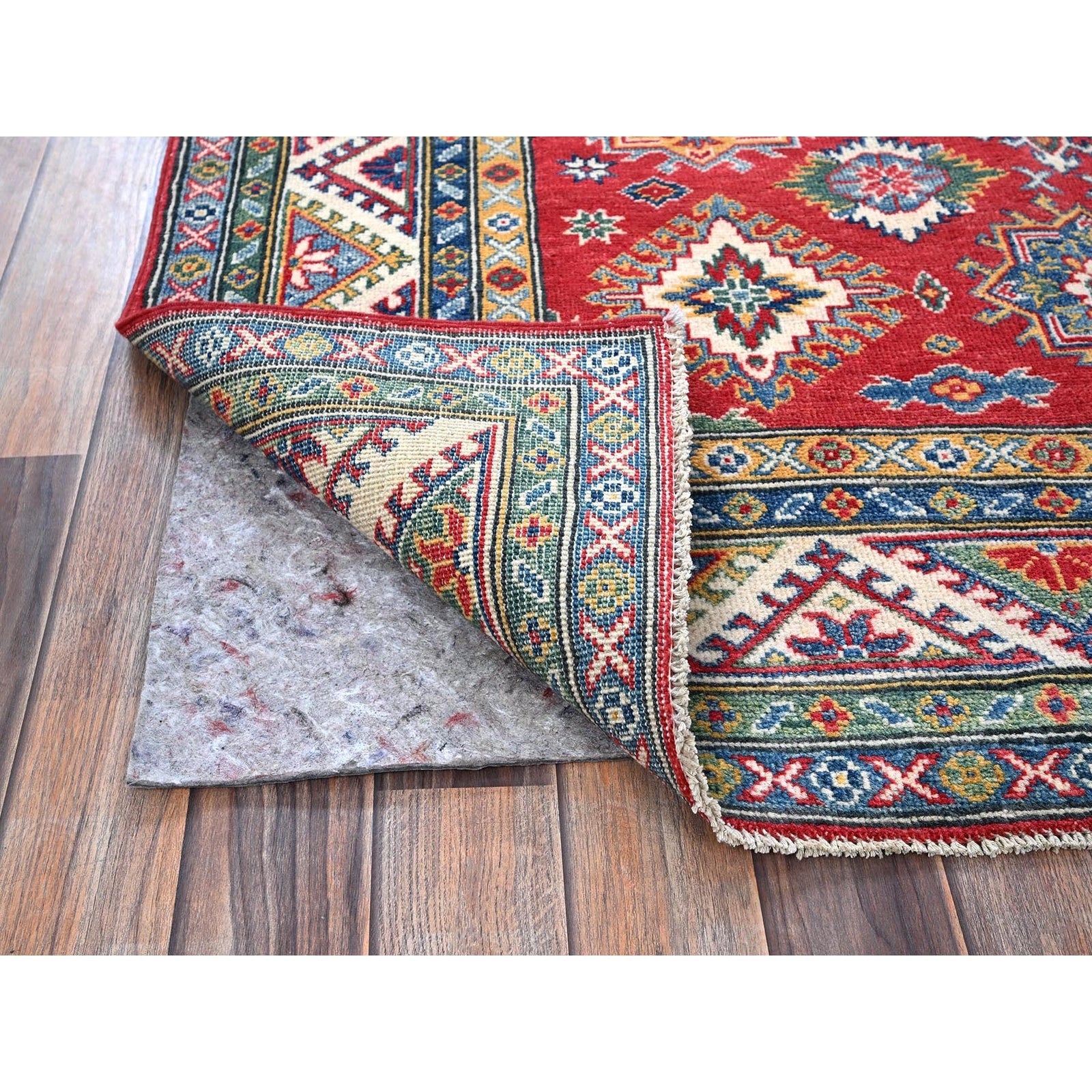 4'10"X6'6" Red Kazak Geometric Pattern Hand Knotted Soft Wool Oriental Rug