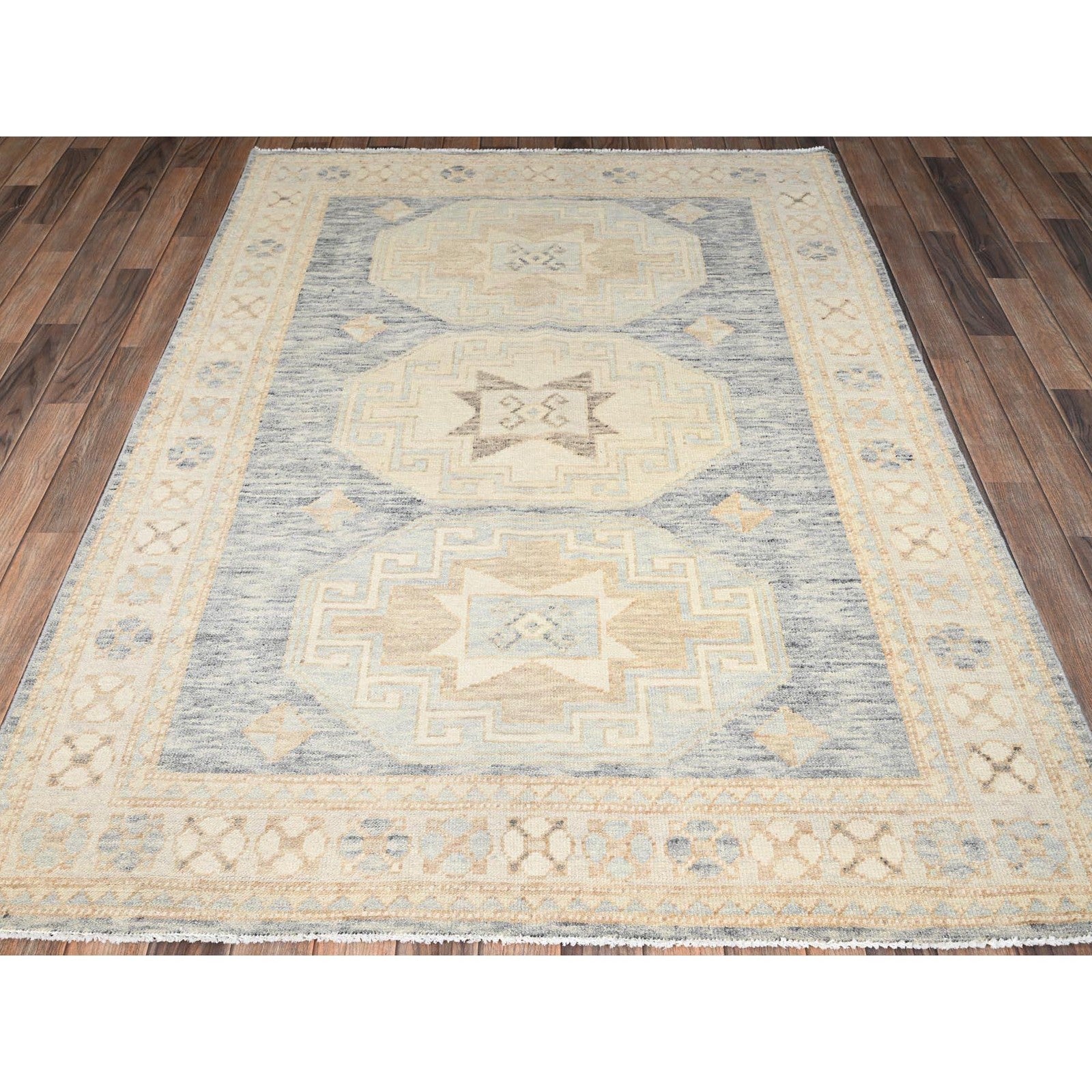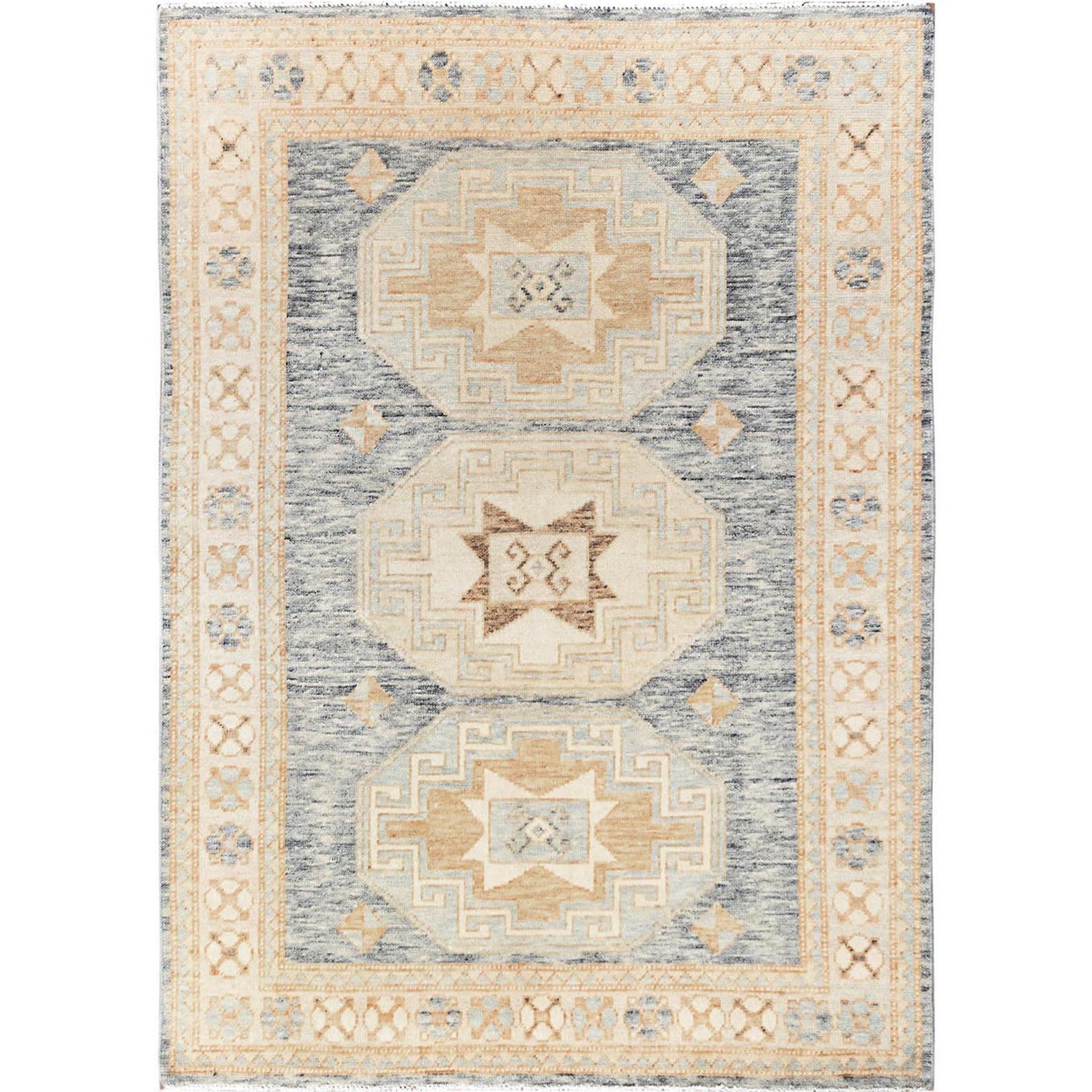 4'10"X7' Ink Black Zero Pile Anatolian Village Design Hand Knotted Wool Rug