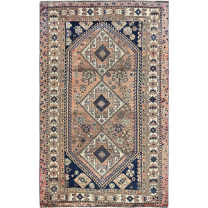 4'10"X8'1" Bisque Brown Vintage Zoroastrian Sheeraz Hand Knotted Wool Rug