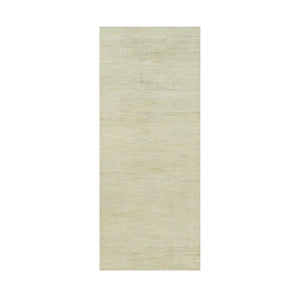 4'1"X10' White Plain Design Wool Hand Knotted Plush Wide Runner Rug