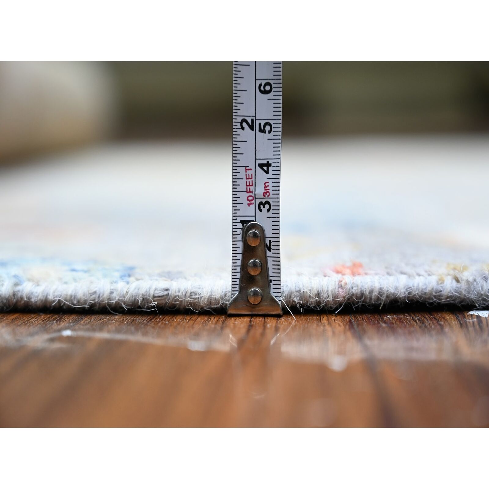 4'1"X11'10" Blue Afghan Peshawar Wool Hand Knotted Wide Runner Rug