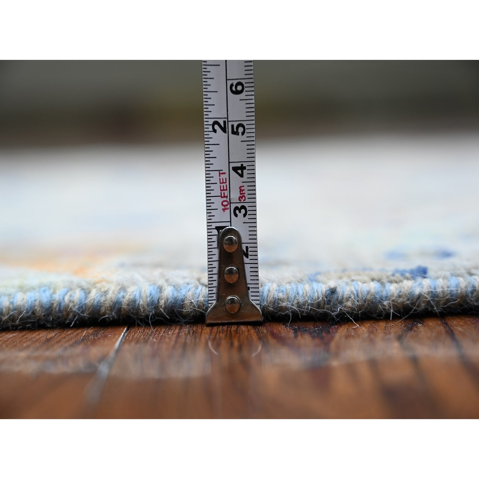 4'1"X12' Gray Organic Wool Hand Knotted Afghan Peshawar Wide Runner Rug