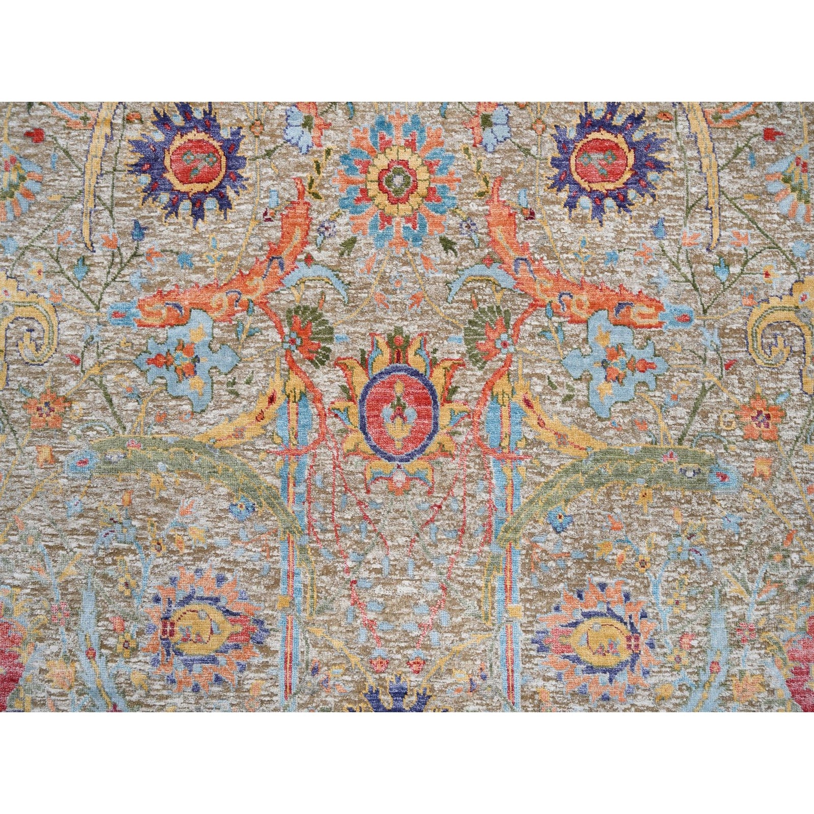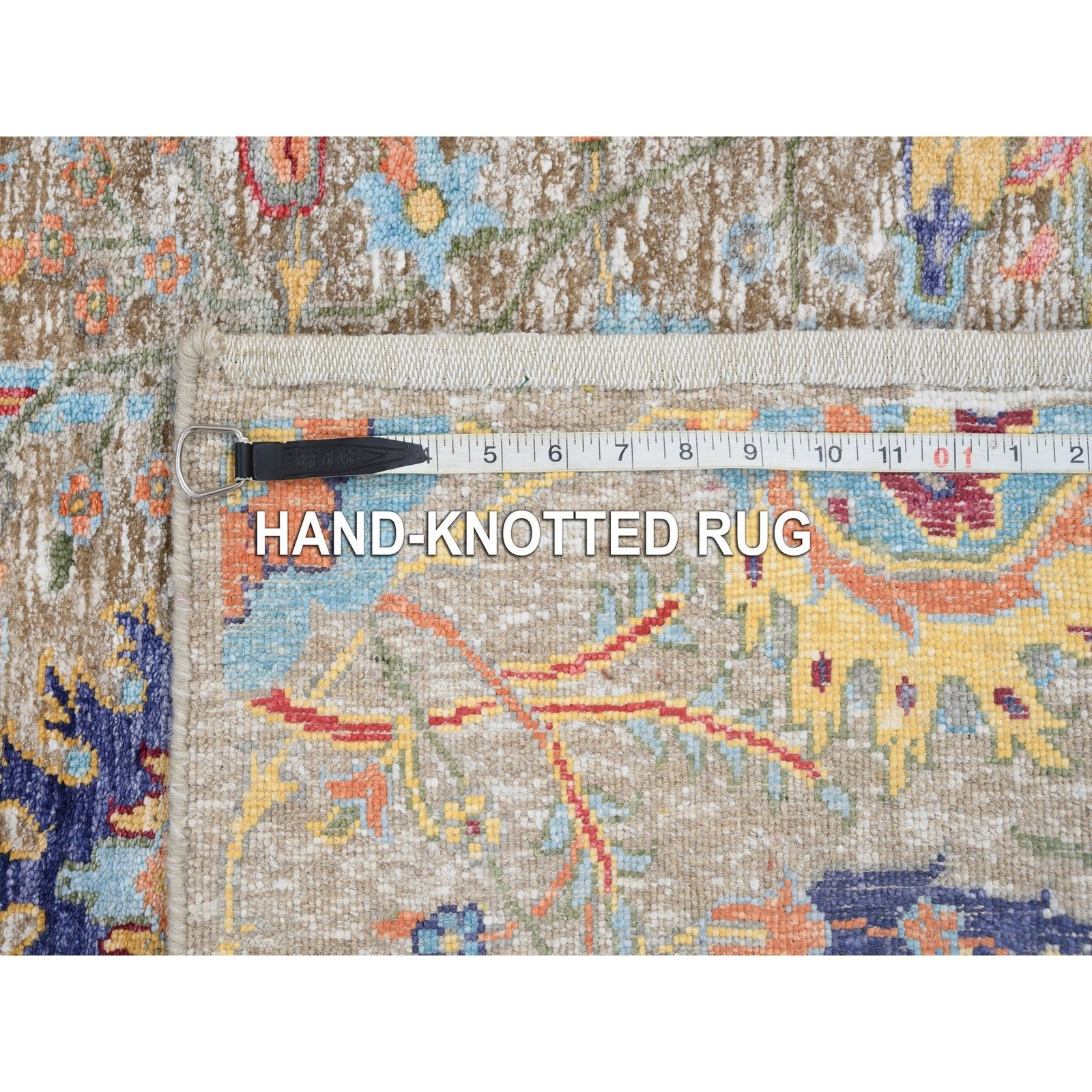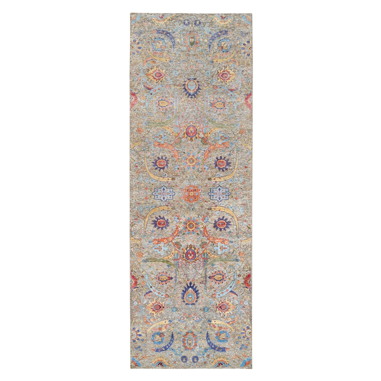 4'1"X12'2" Tan Sickle Design Silk And Wool Hand Knotted Wide Runner Rug