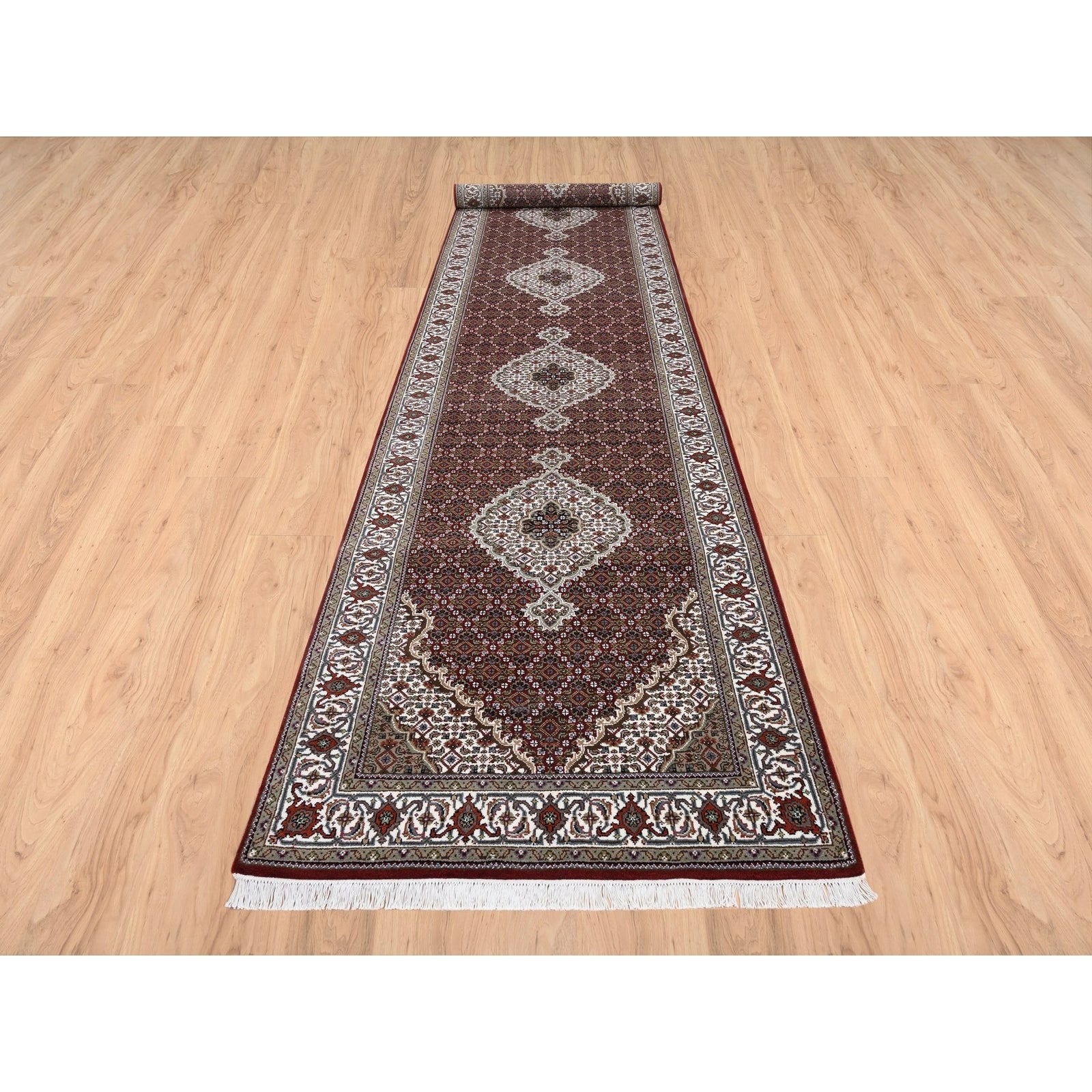 4'1"X16' Red Tebraz Mahi Wool And Silk Hand Knotted Wide Xl Runner Rug