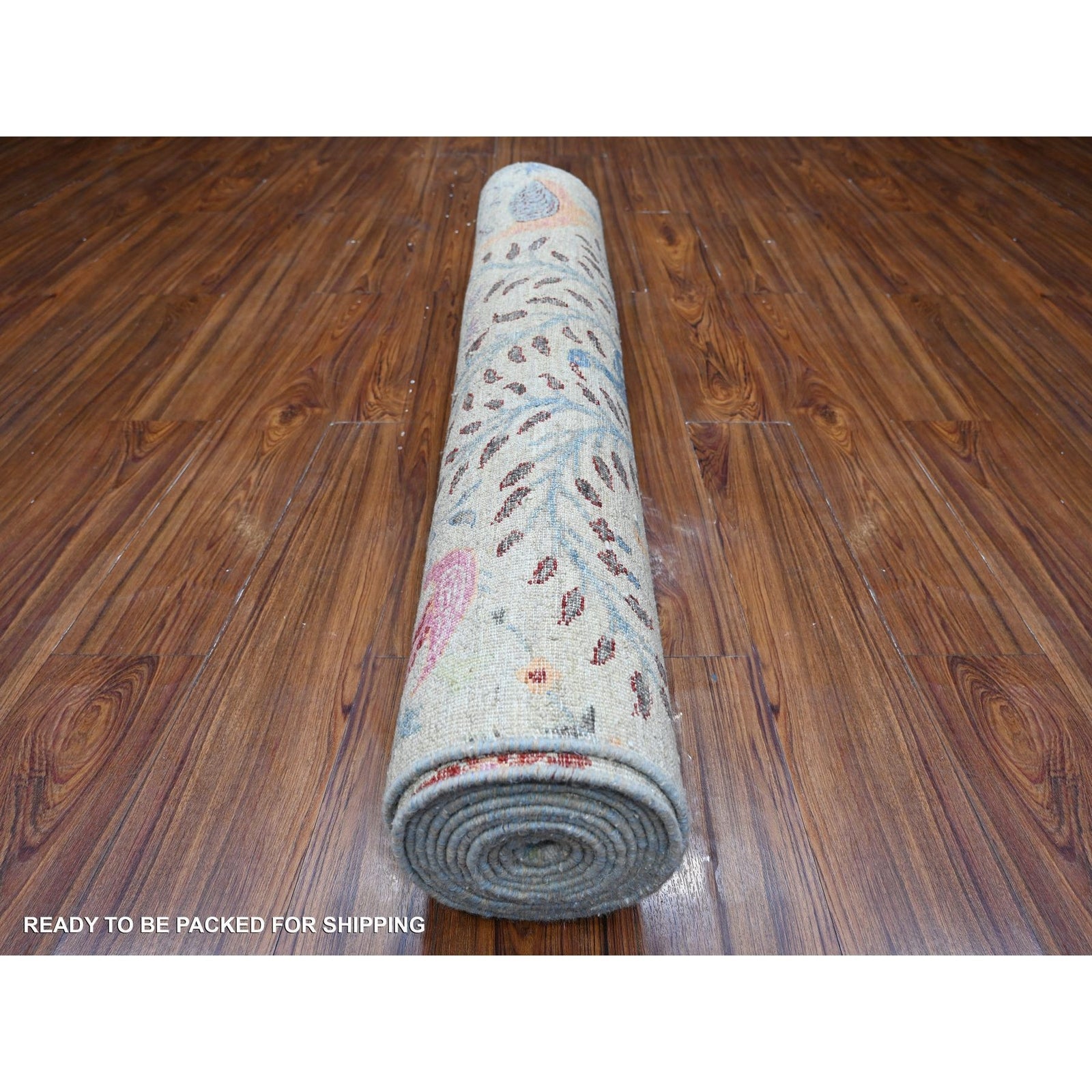 4'1"X16' Tint Gray Birds Of Paradise Peshawar Hand Knotted Oriental Rug