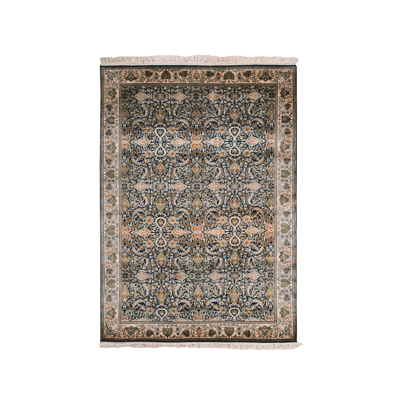 4'1"X6' Graphite Blue Pure Silk 400 Kpsi Hand Knotted All Over Design Rug