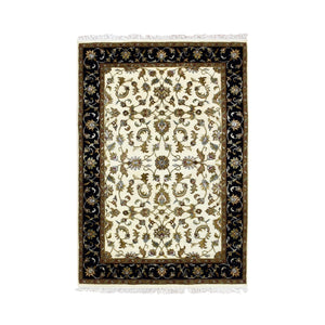 4'1"X6' Ivory, Hand Knotted, Rajasthan, Wool And Silk, Oriental, Rug
