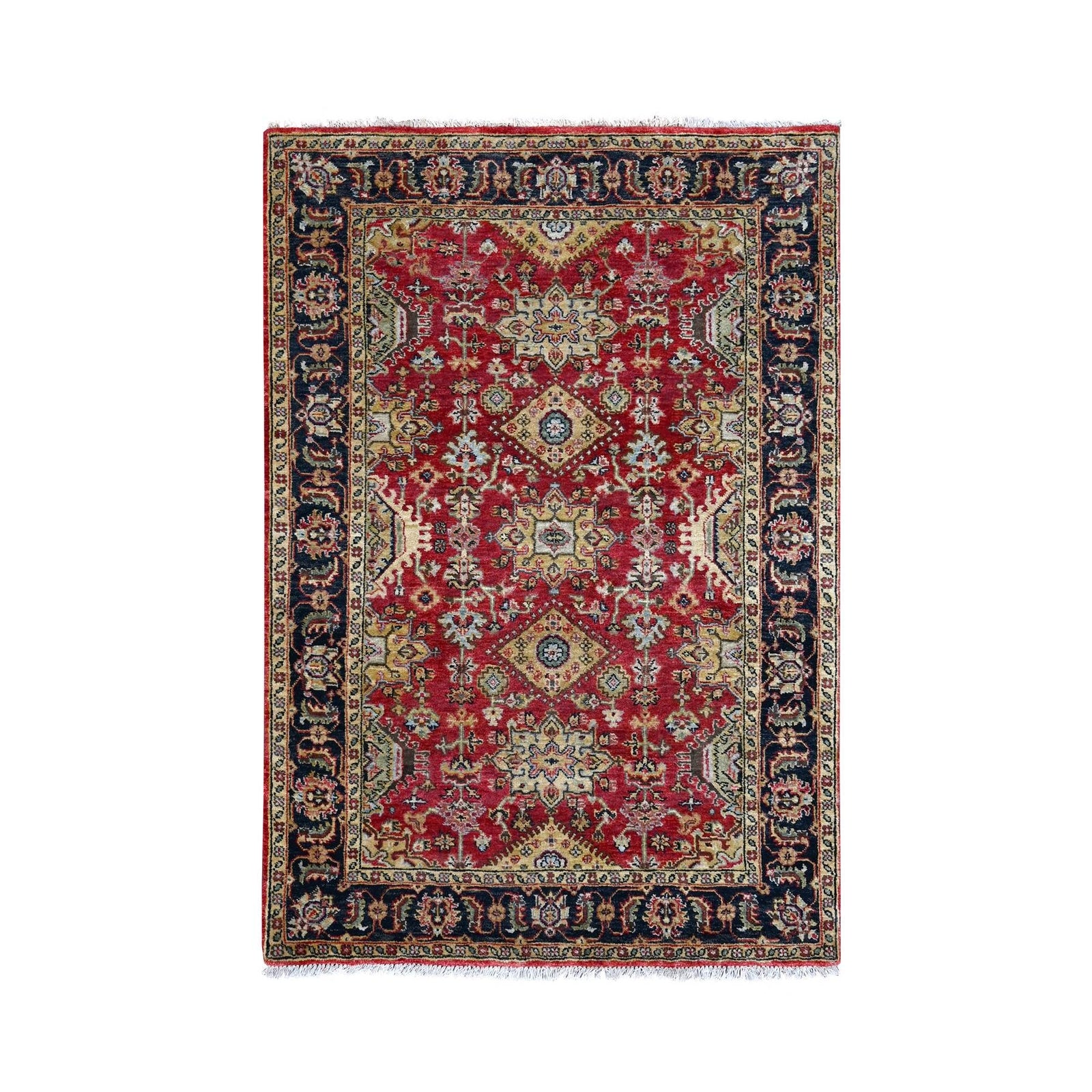 4'1"X6' Red And Black Karjihooz Design Wool Hand Knotted Oriental Rug