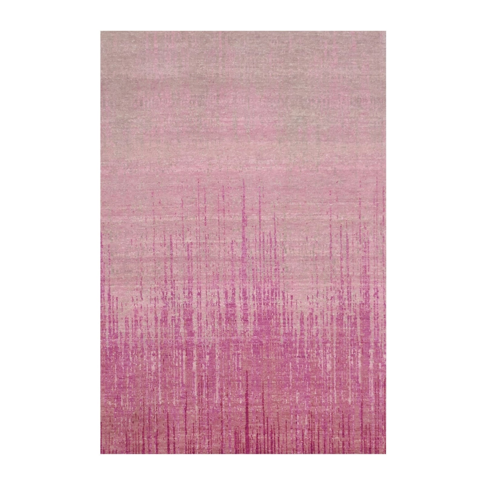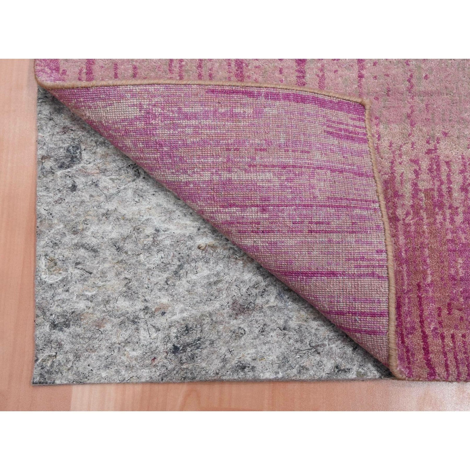 4'1"X6'2" Hand Knotted Pink Vertical Ombre Design Natural Wool Rug