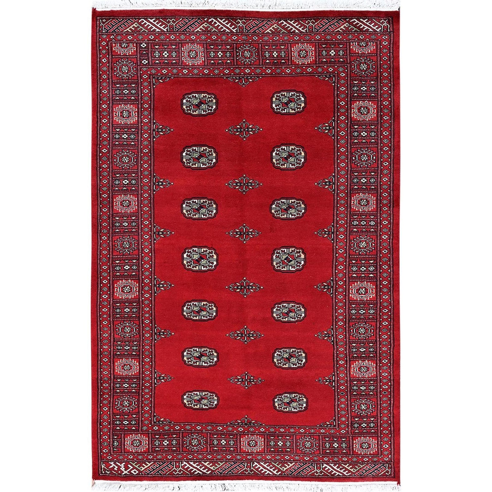 4'1"X6'3" Red Princess Bokara Tribal Medallions Soft Wool Hand Knotted Rug