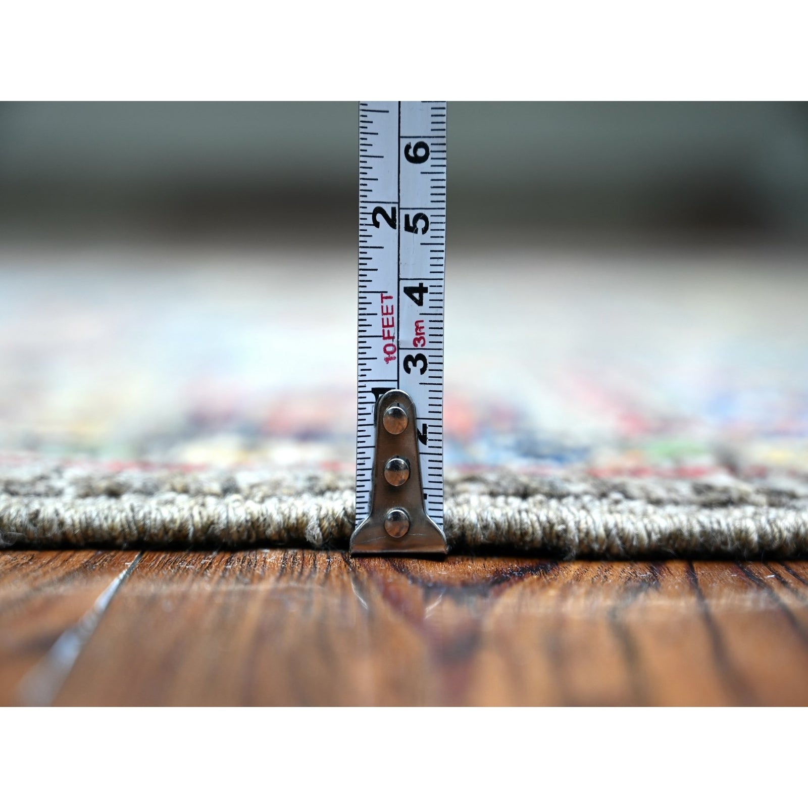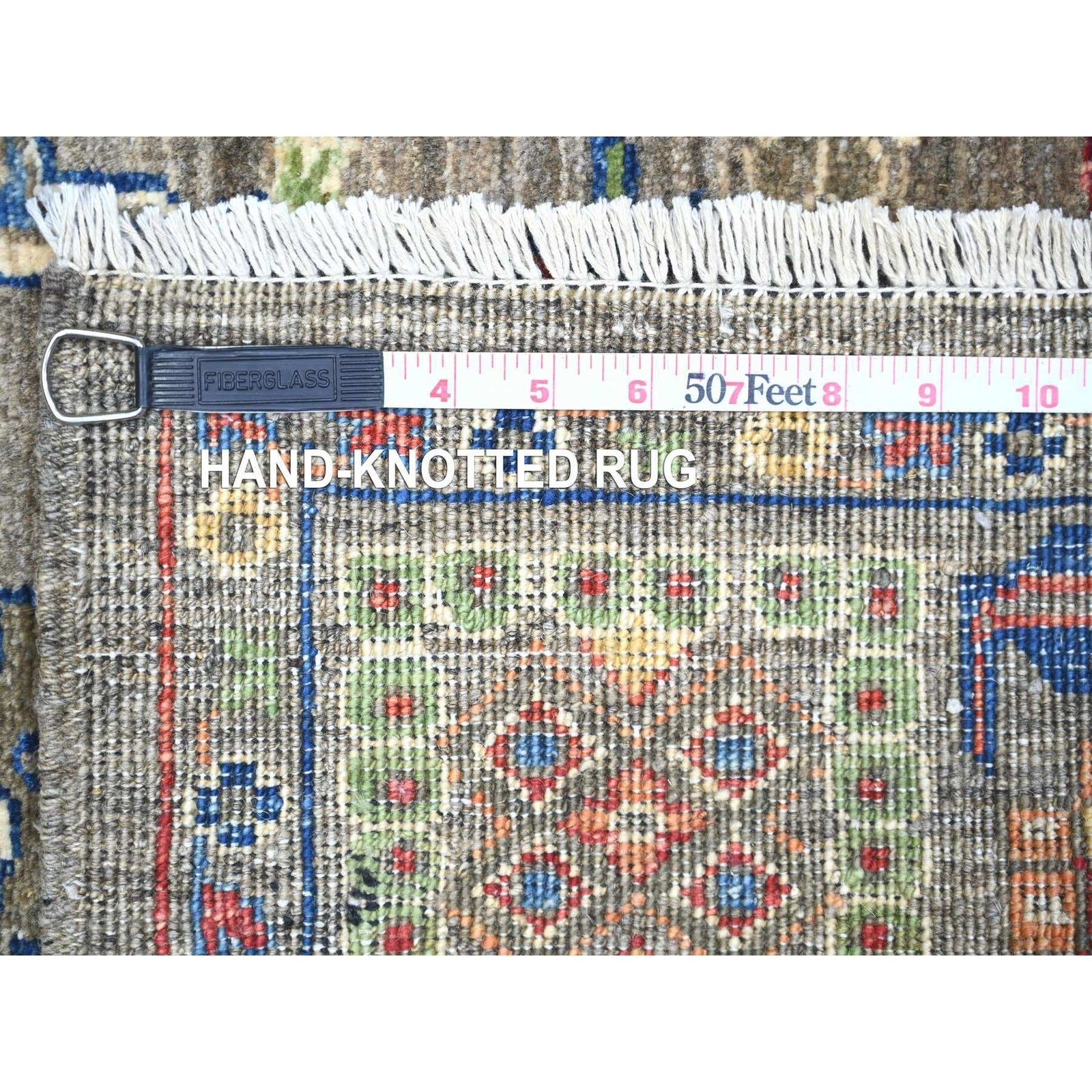 4'1"X9'8" Echo Gray Wool Peshawar Colorful Mahal Hand Knotted Runner Rug