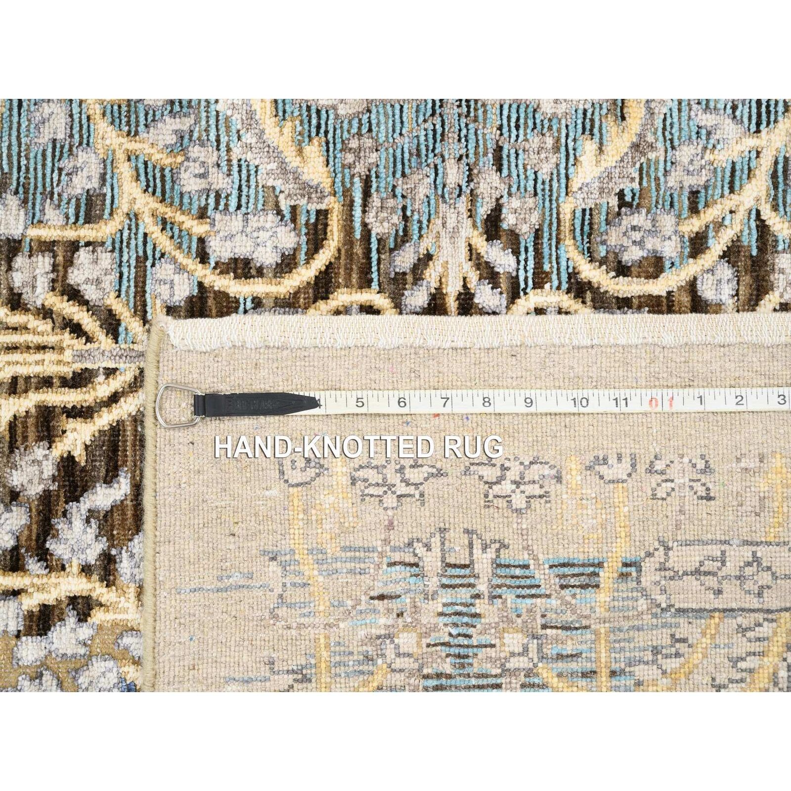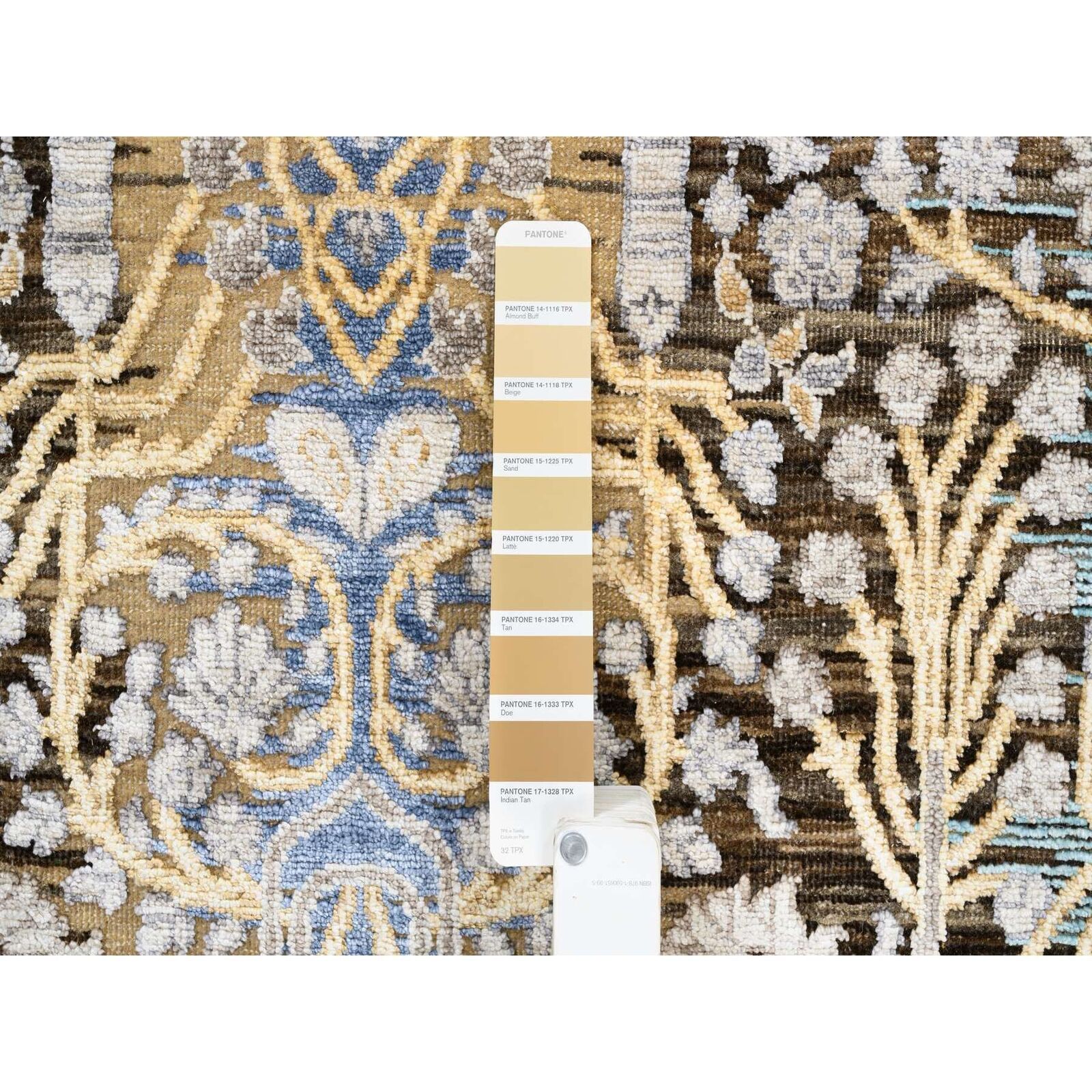 4'2"X10' Gold Brown Hand Knotted Silk With Wool Wide Runner Rug