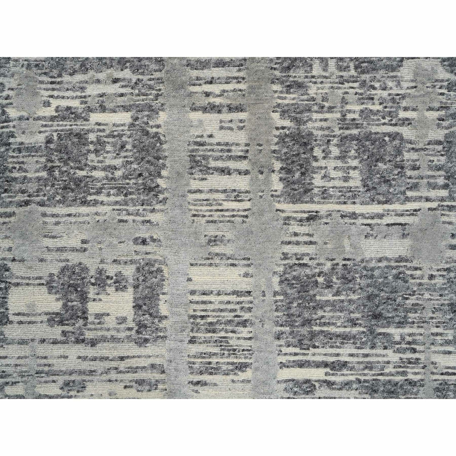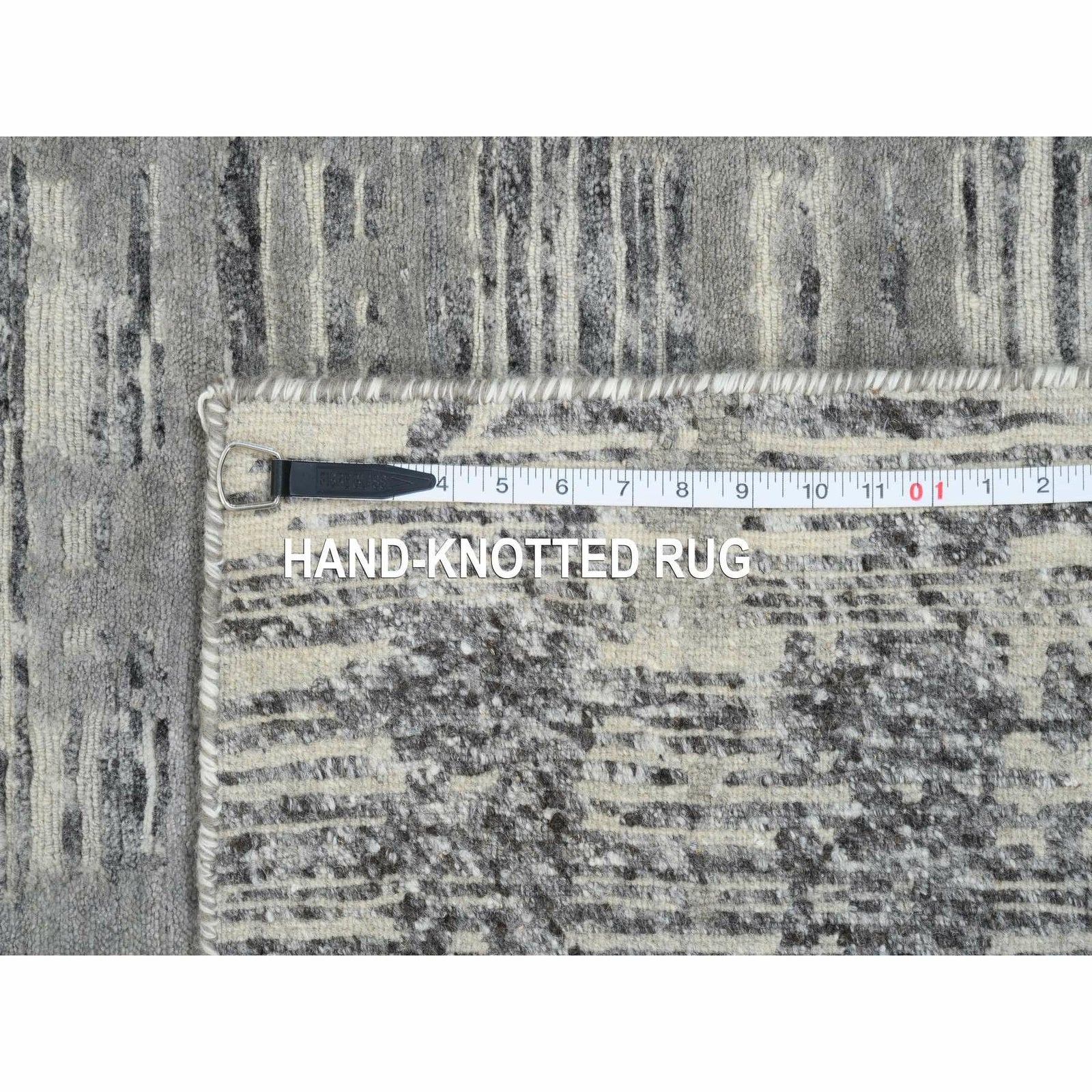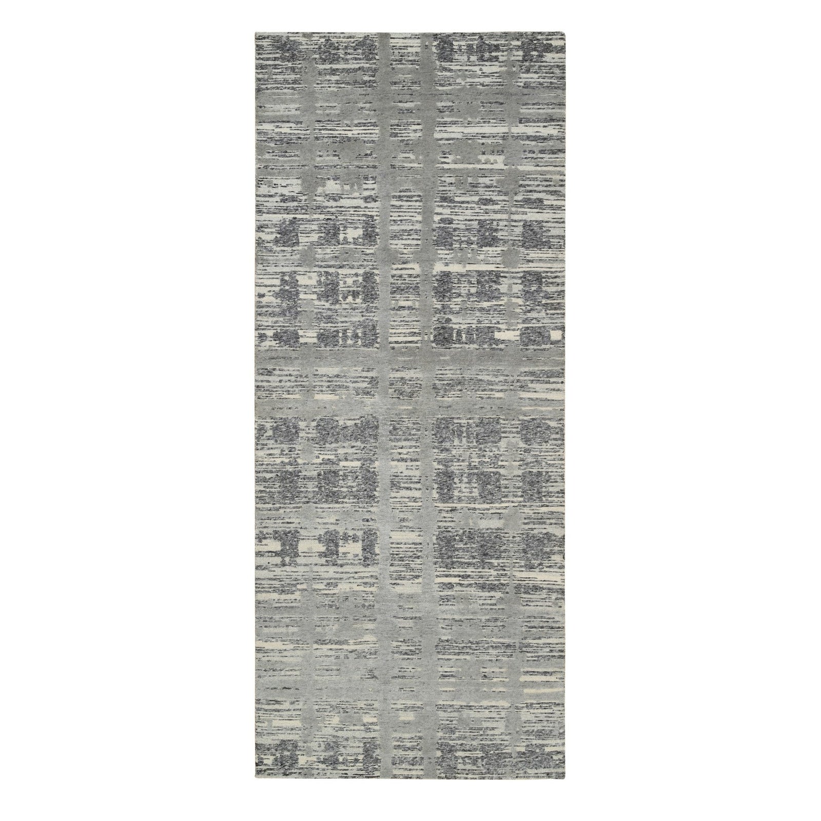 4'2"X10'1" Gray Hand Spun Undyed Naturalwool Hand Knotted Wide Runner Rug