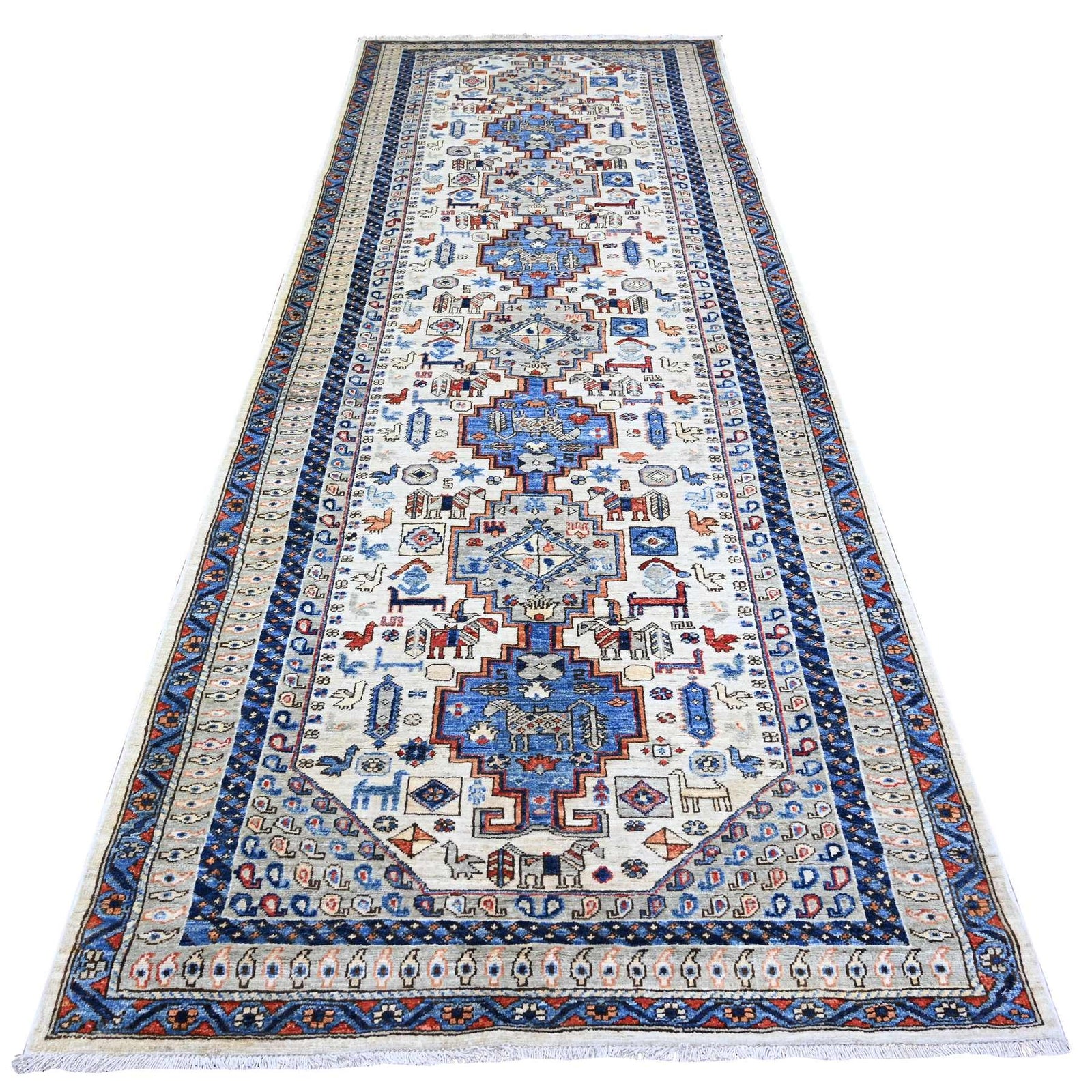 4'2"X11'4" Silky White Aryana Collection Wool Hand Knotted Oriental Rug