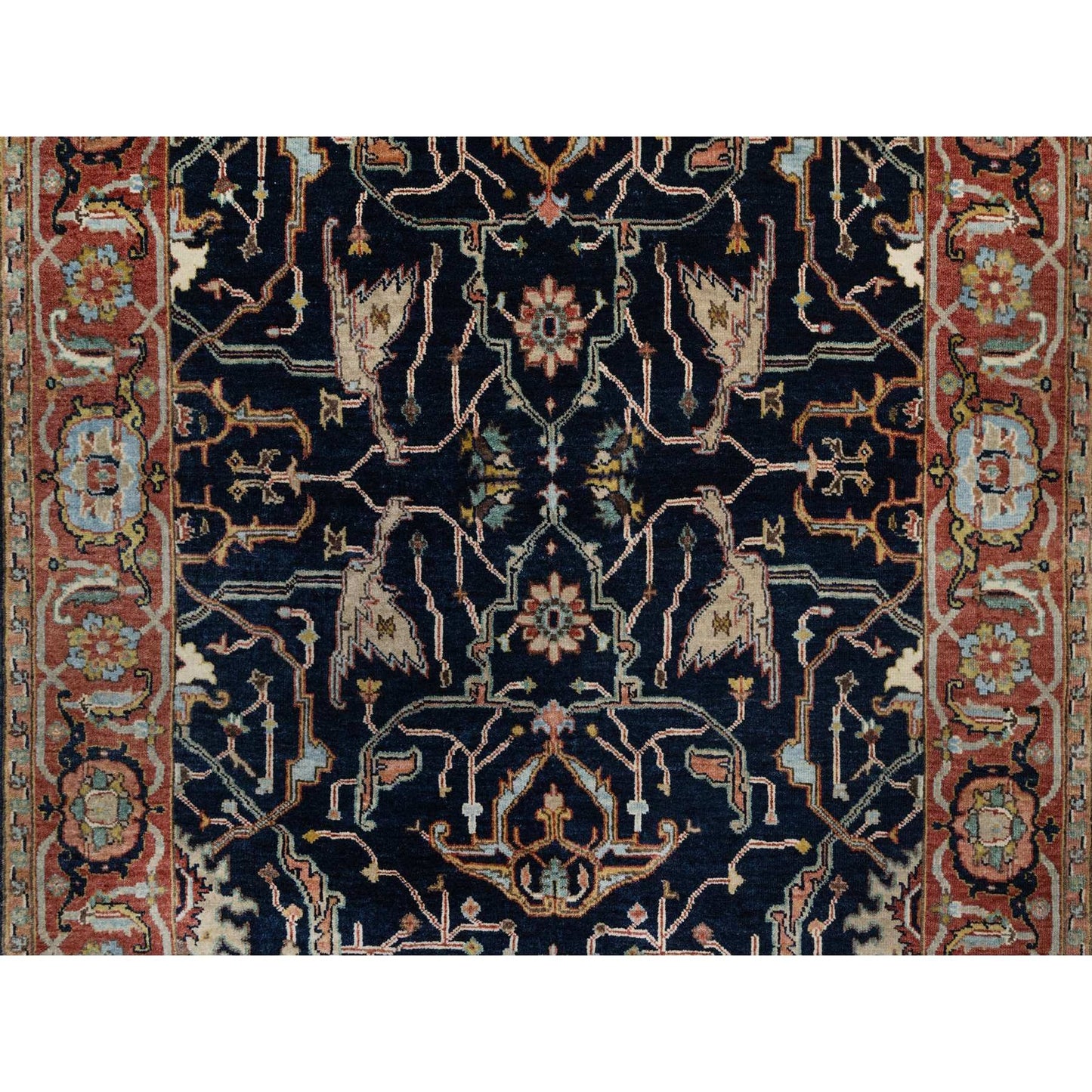 4'2"X12'2" Navy Antiqued Heris Re-Creation Hand Knotted Wool Runner Rug