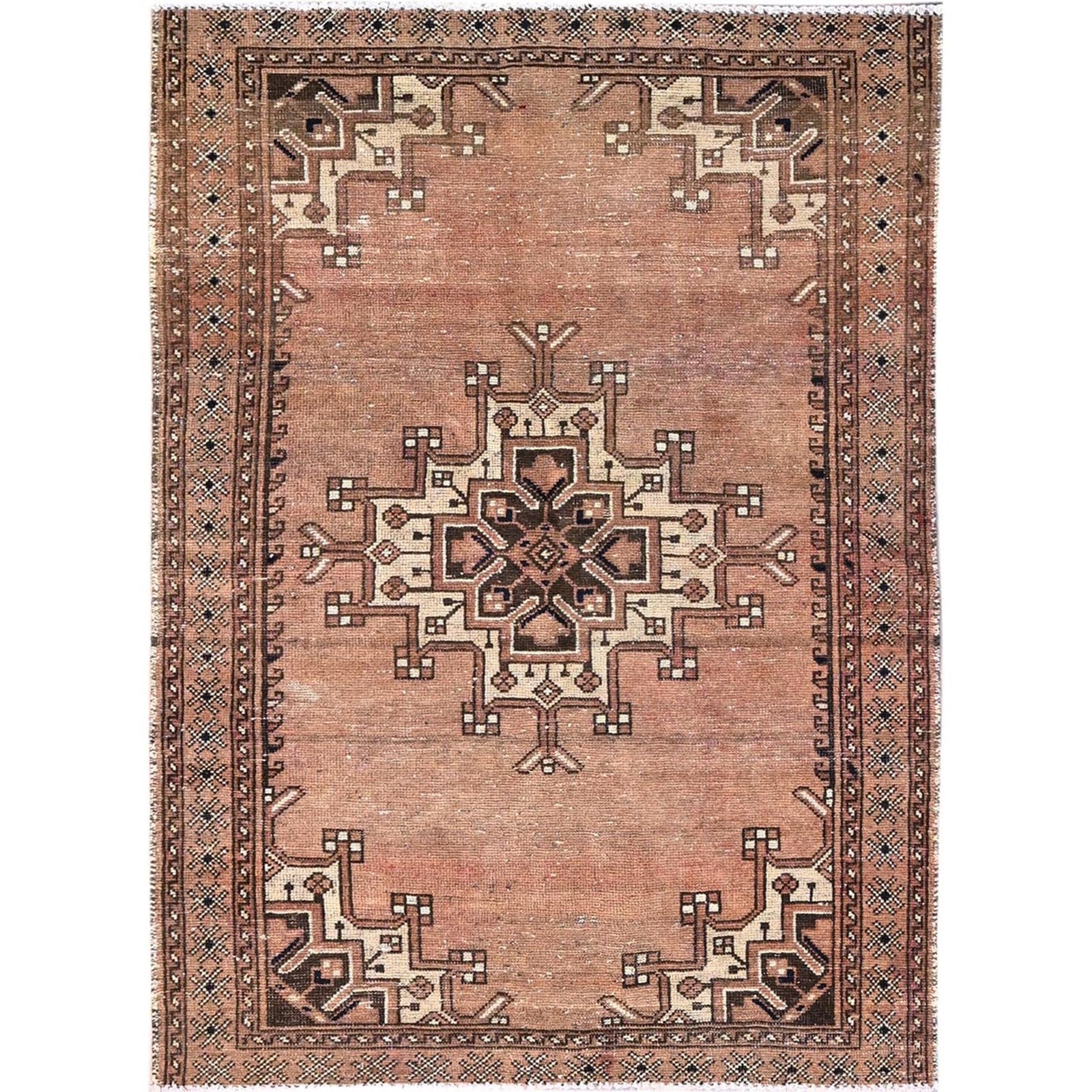 4'2"X6' Friar Brown Distressed Zoroastrian Gabbeh Wool Hand Knotted Rug