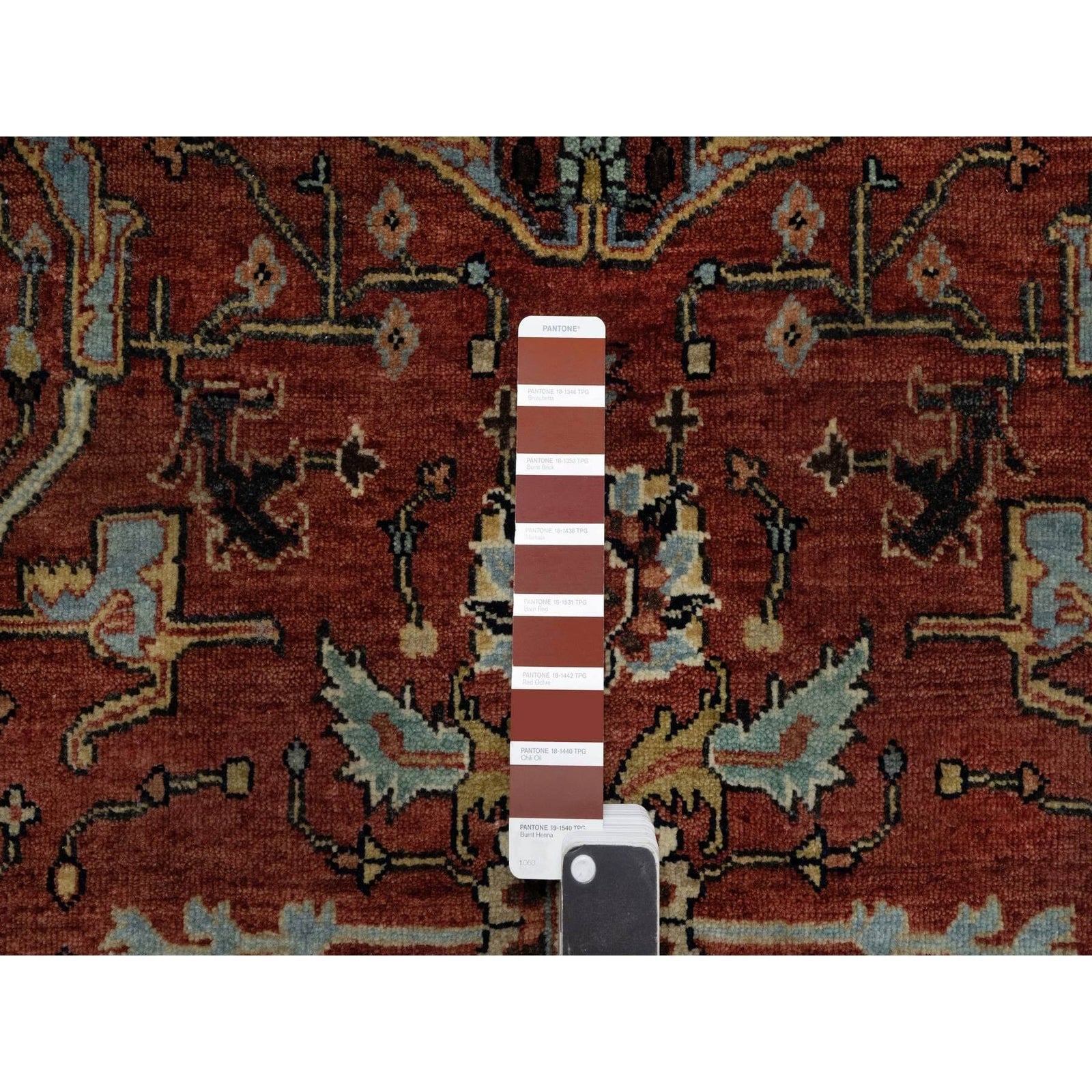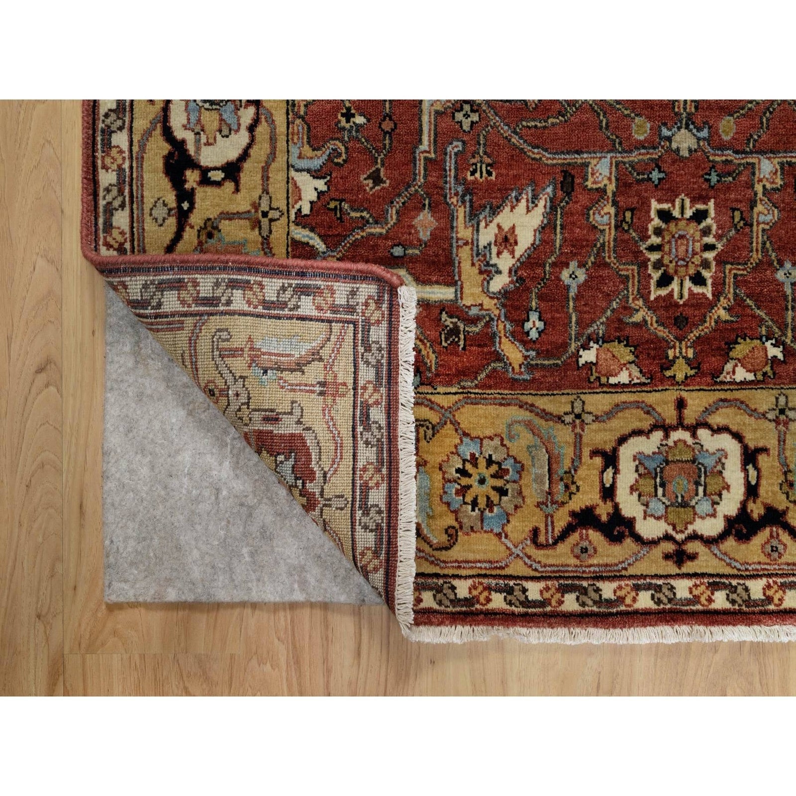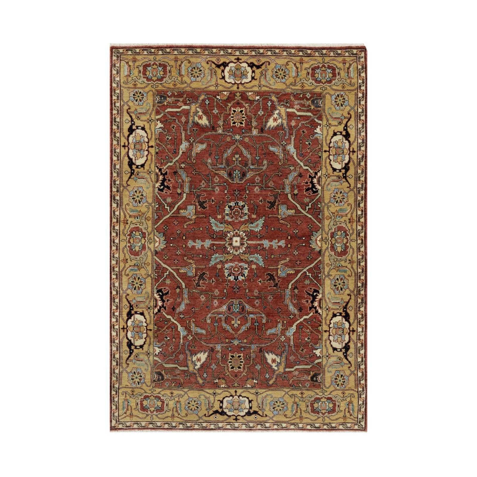 4'2"X6'2" Red Antiqued Fine Heris Re-Creation Hand Knotted Pure Wool Rug
