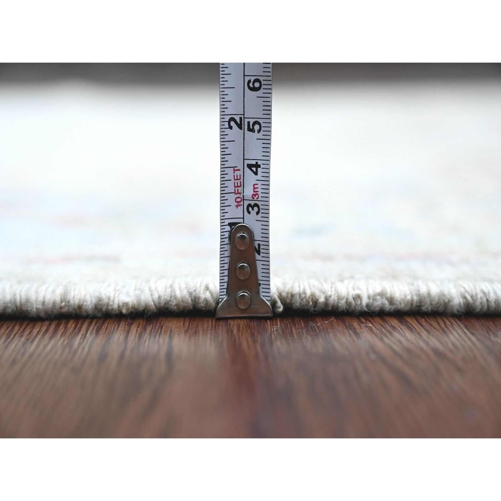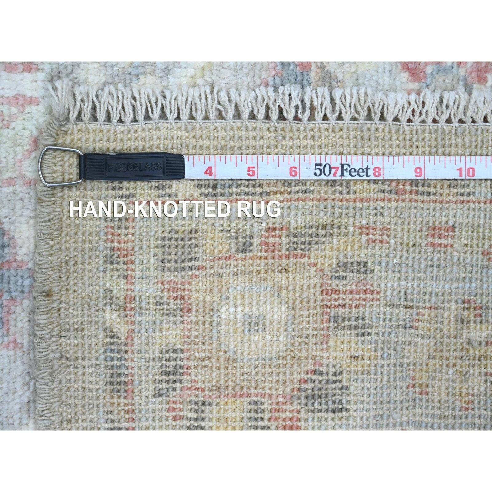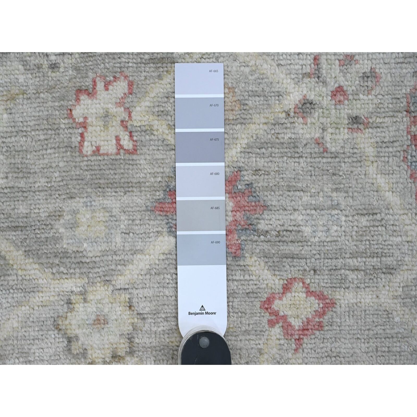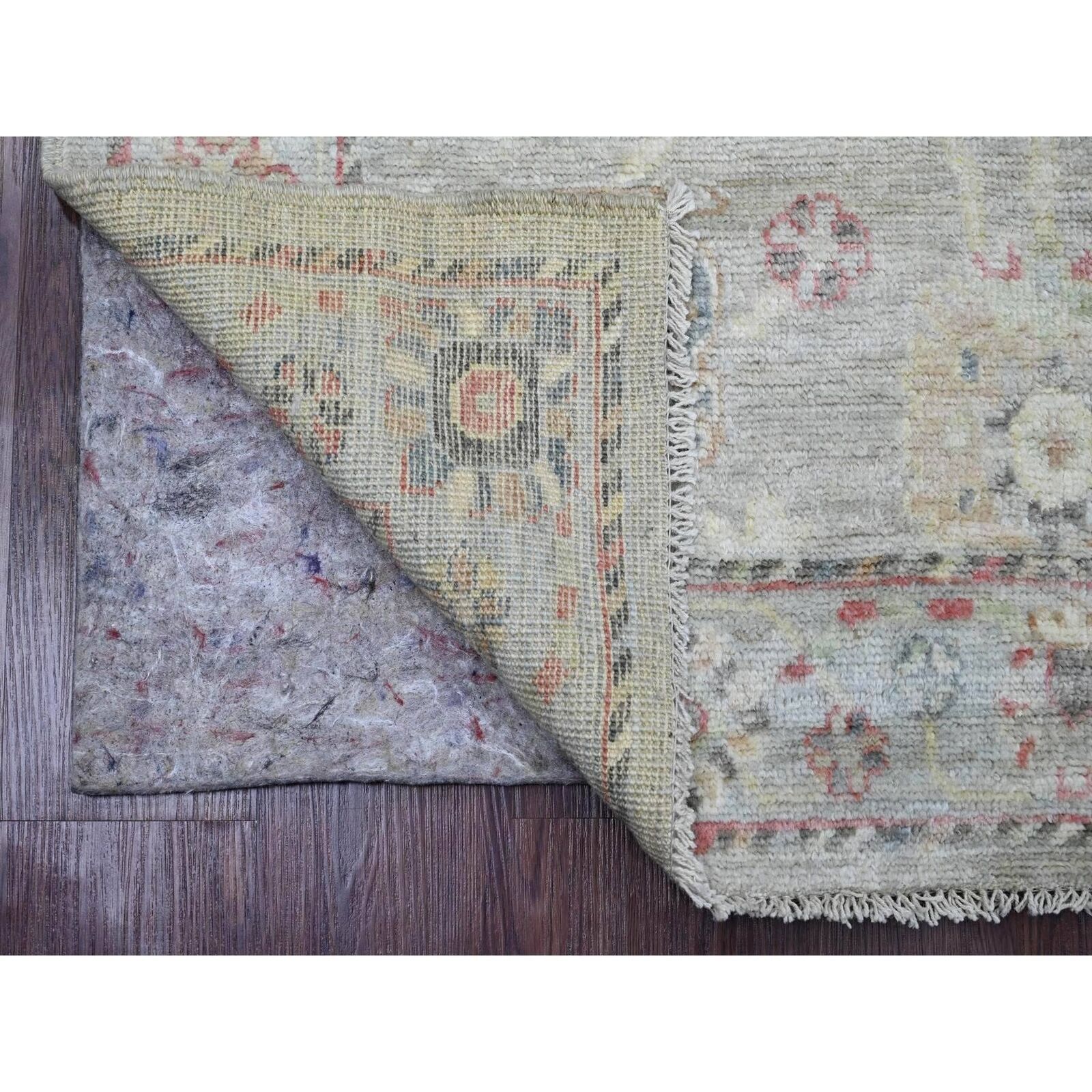 4'2"X9'10" Gray Angora Oushak Vines Design Hand Knotted Wool Runner Rug