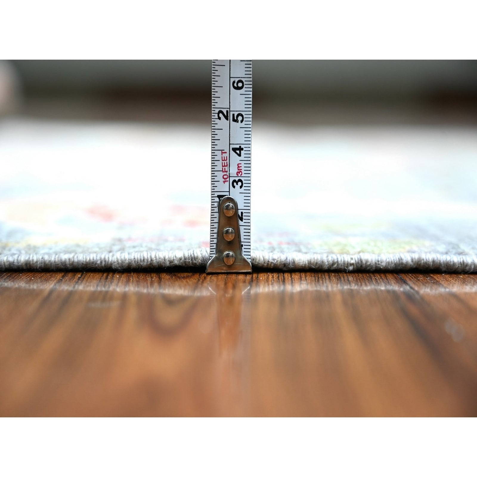 4'2"X9'8" Ice Gray Extra Soft Wool Hand Knotted Afghan Peshawar Rug
