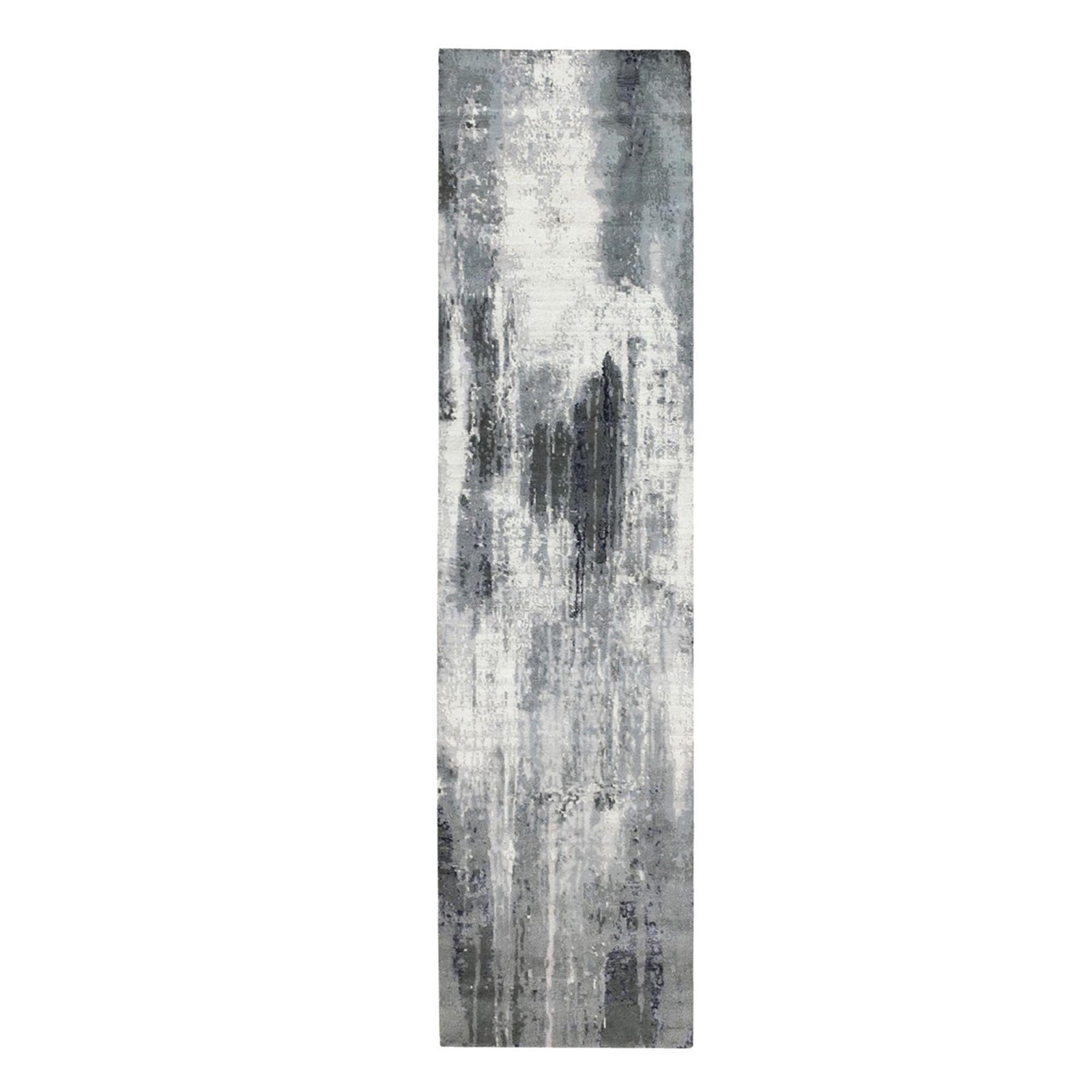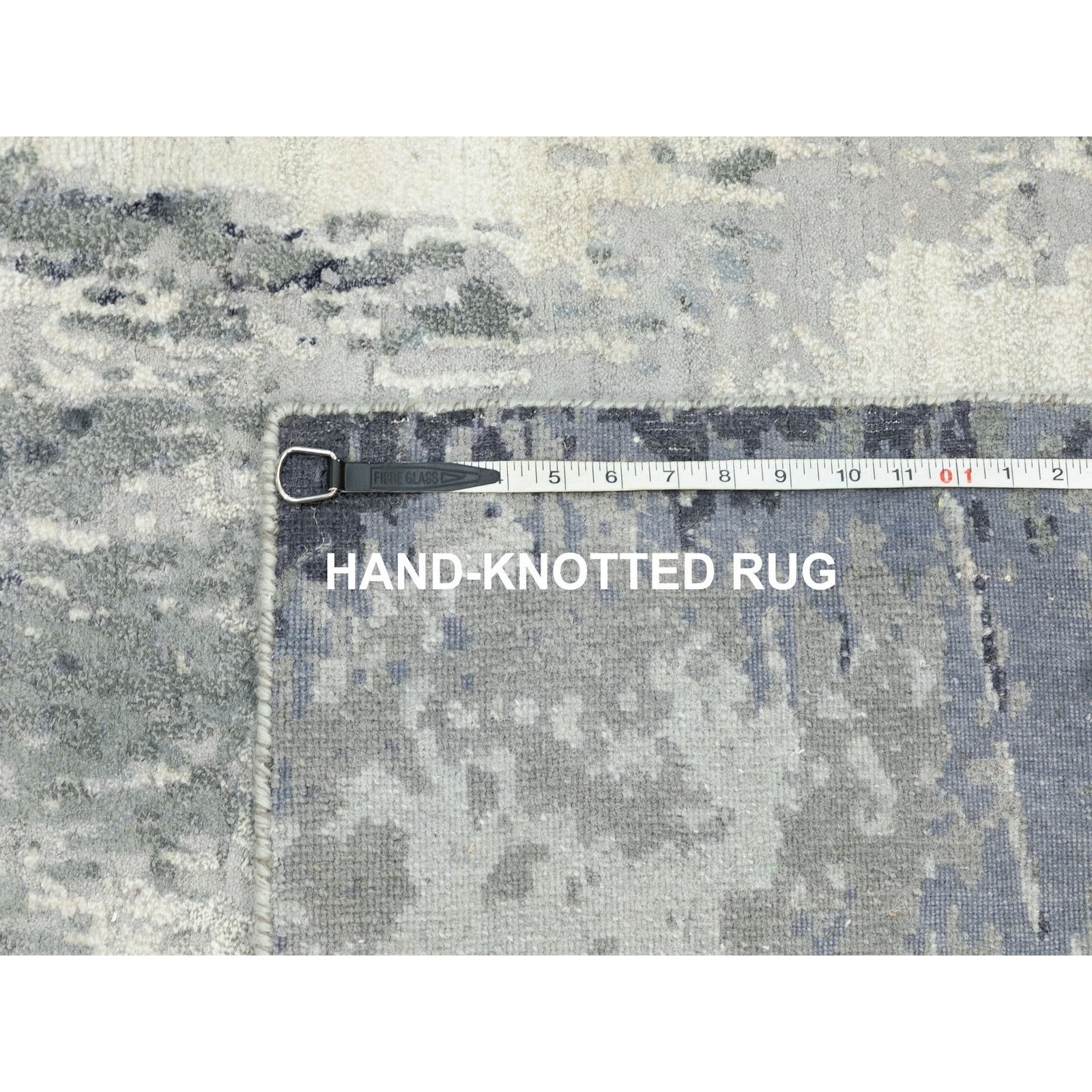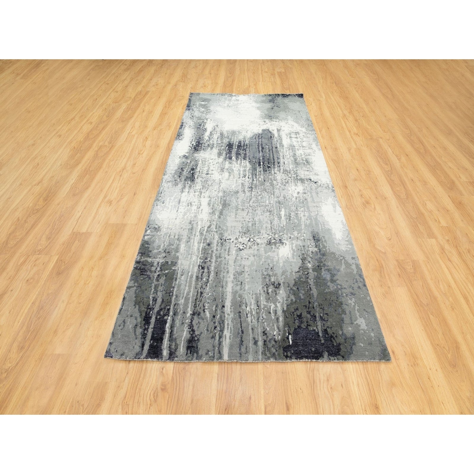 4'3"X10' Gray With Charcoal Black Hand Knotted Abstract Wool-Silk Rug