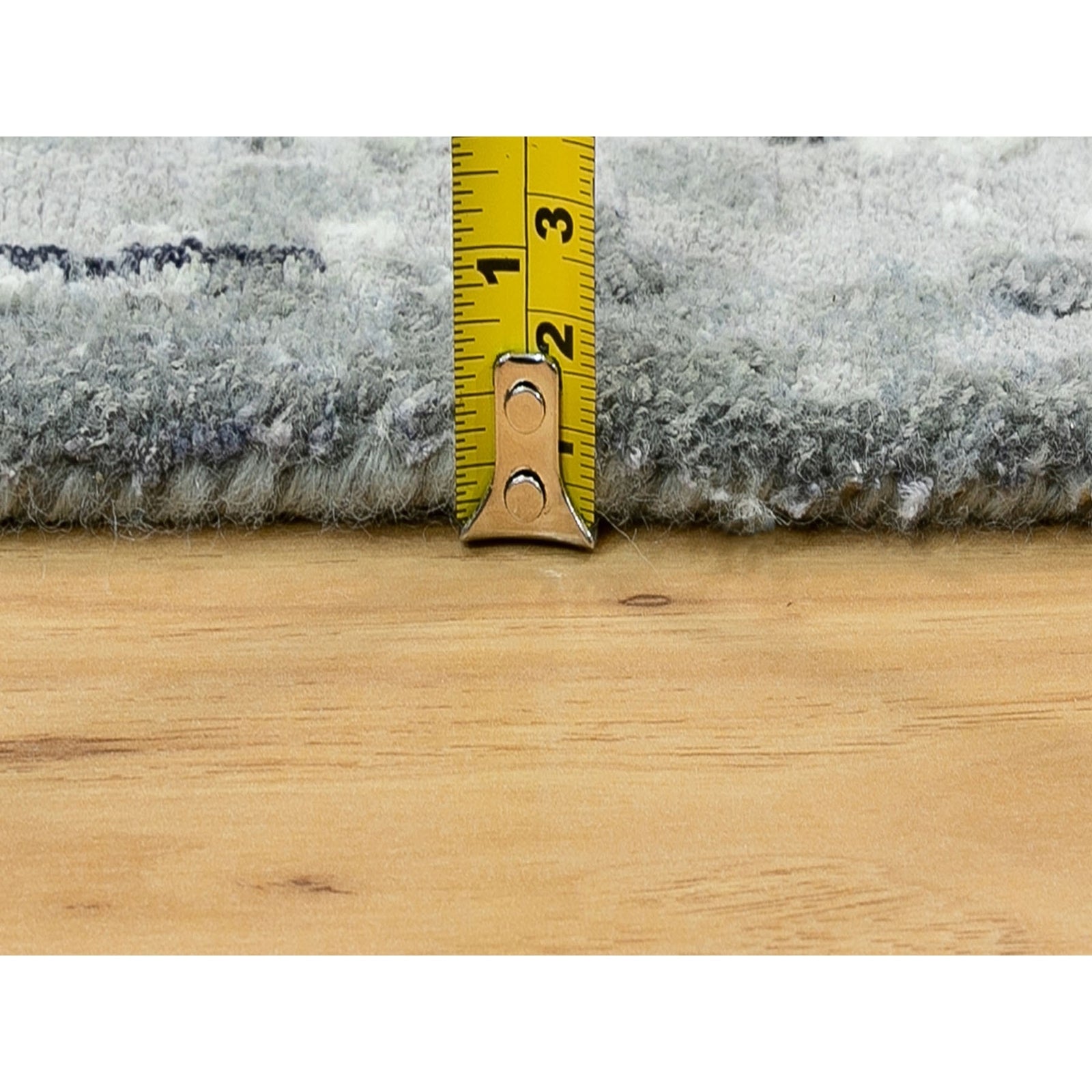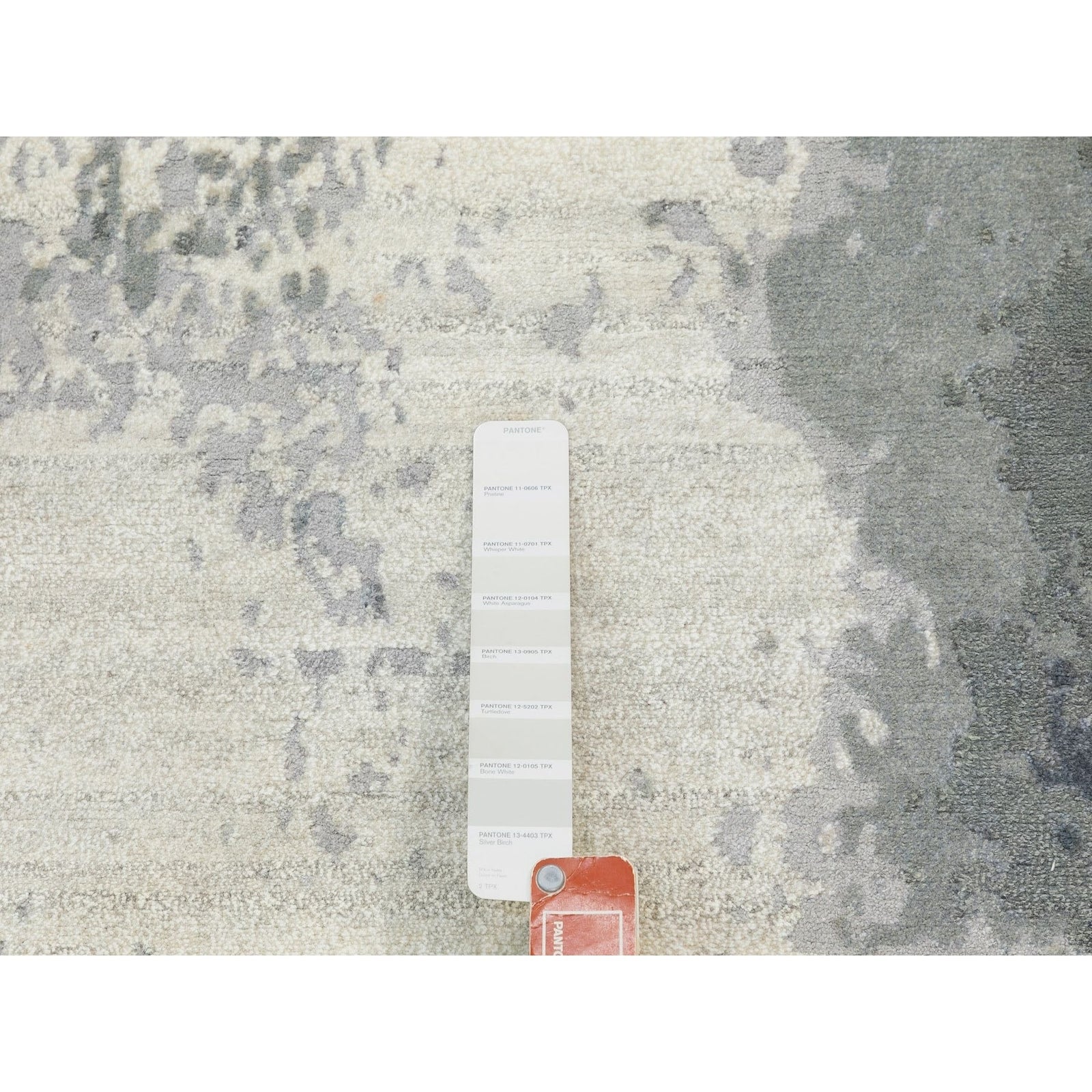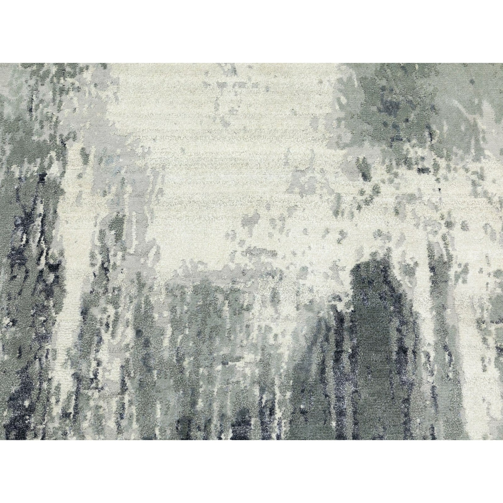 4'3"X10' Gray With Charcoal Black Hand Knotted Abstract Wool-Silk Rug