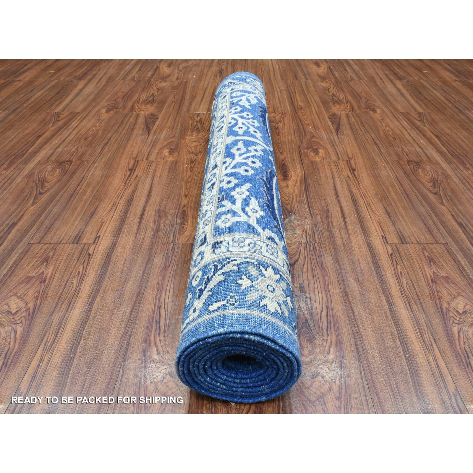 4'3"X11'9" Blue Fine Peshawar Soft Wool Hand Knotted Wide Runner Rug
