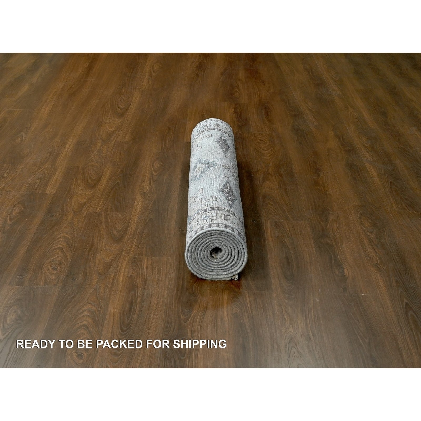 4'3"X12' Intellectual Gray Farsian Village Wool Hand Knotted Runner Rug