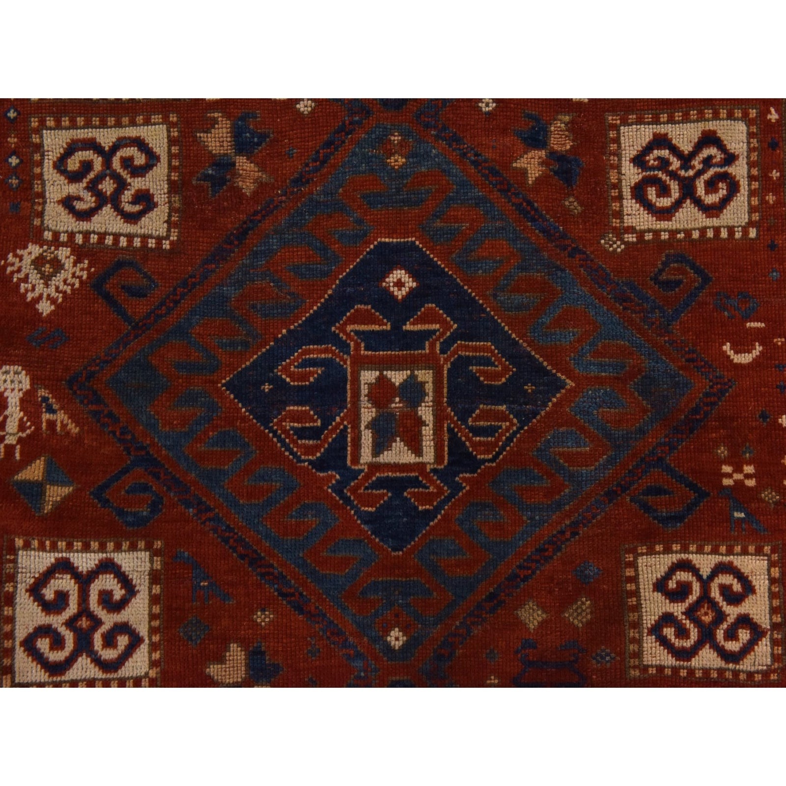 4'3"X6'3" Red Antique Caucasian Kazak Hand Knotted 100% Wool Oriental Rug