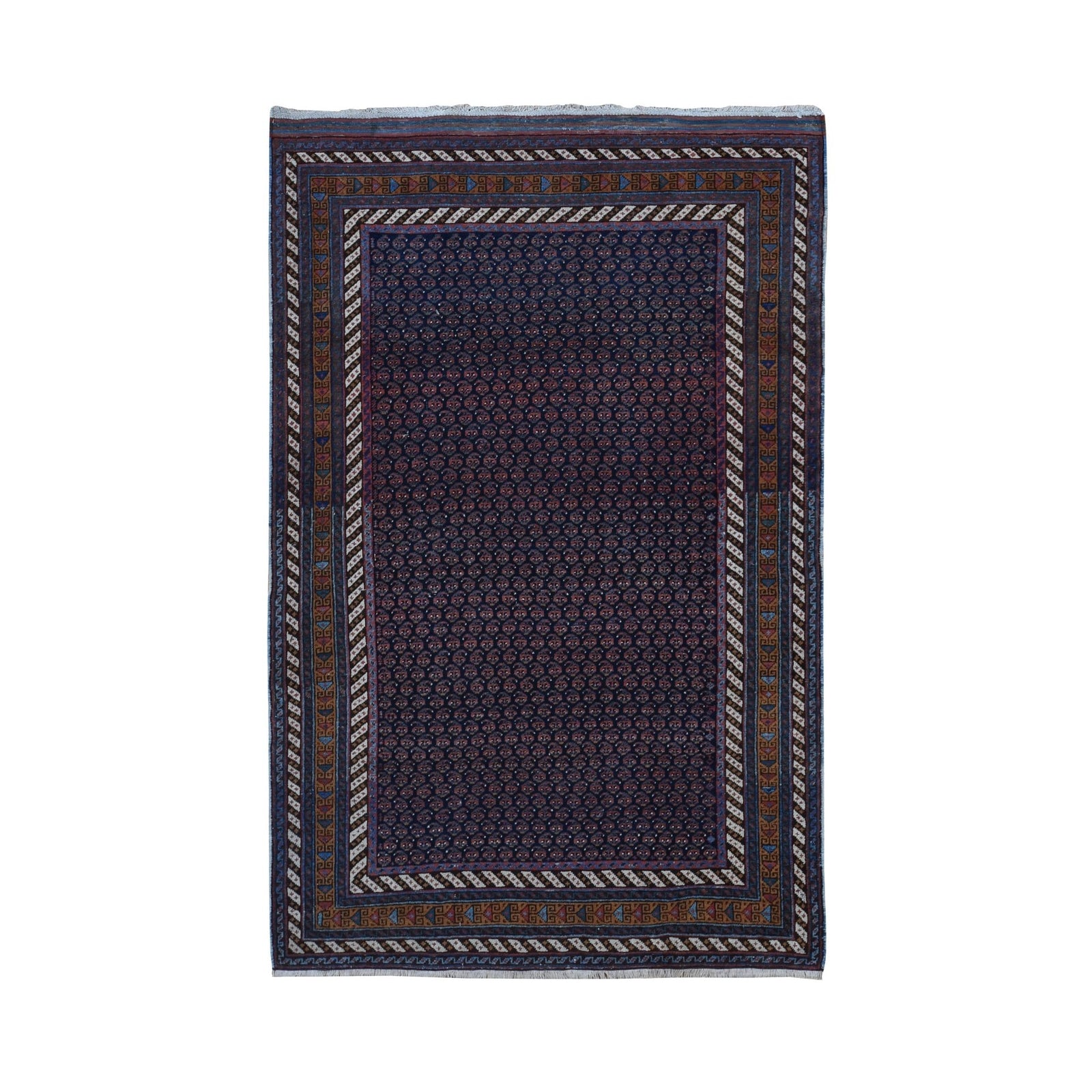 4'4"X6'10" Blue Antique Zoroastrian Hand Knotted Pure Wool Soft Clean Rug