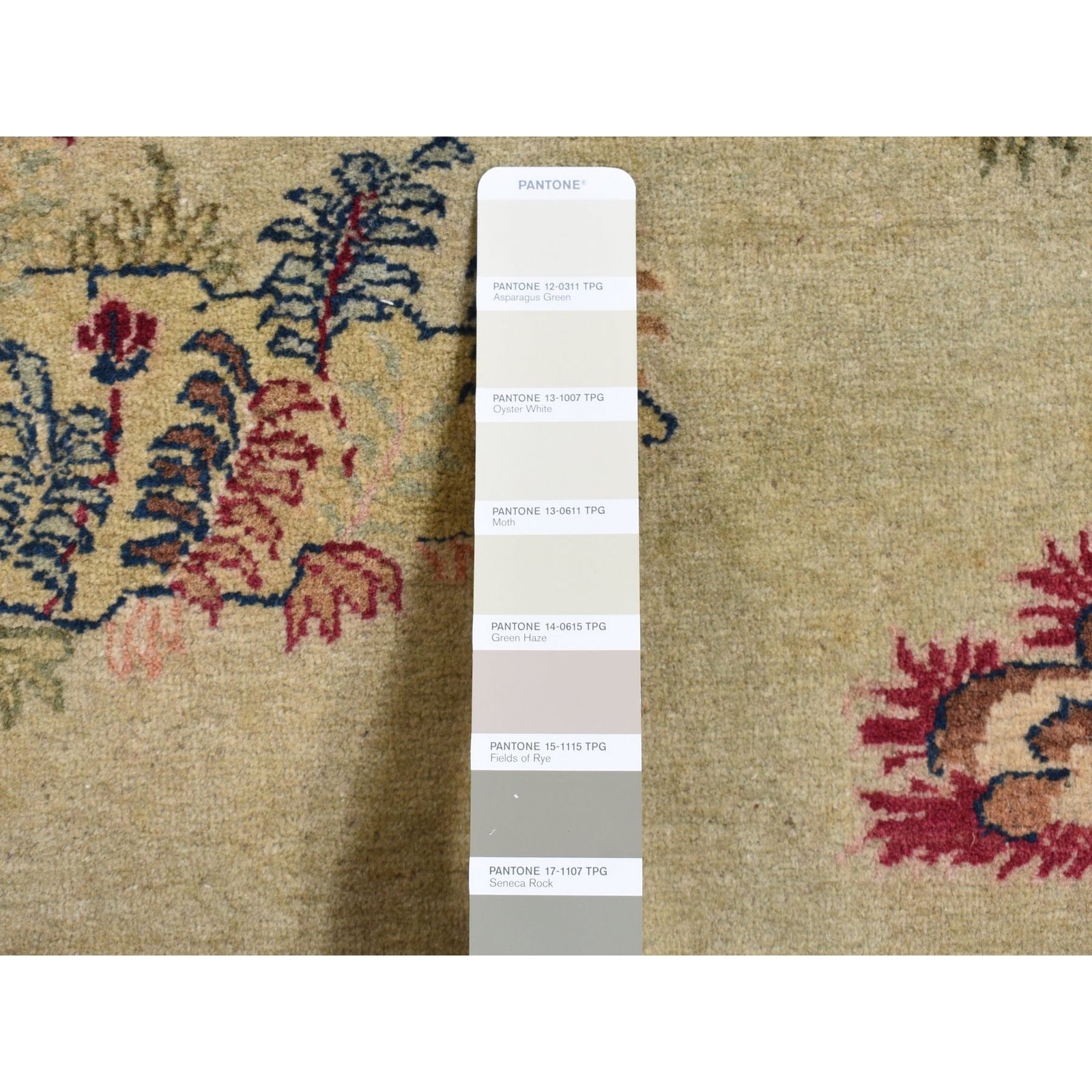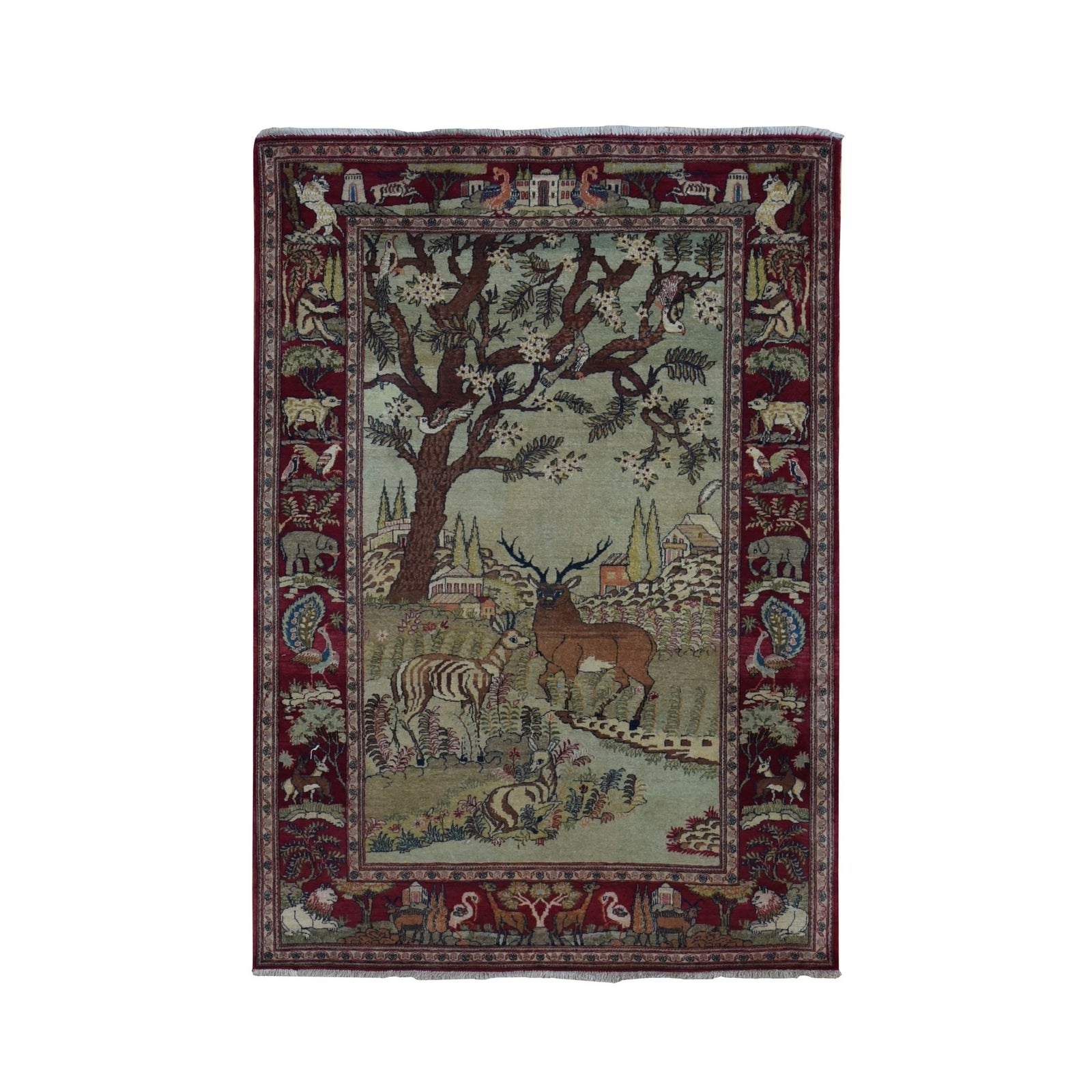 4'7"X6'7" White Antique Kishoon Design Hand Knotted Pure Wool Rug