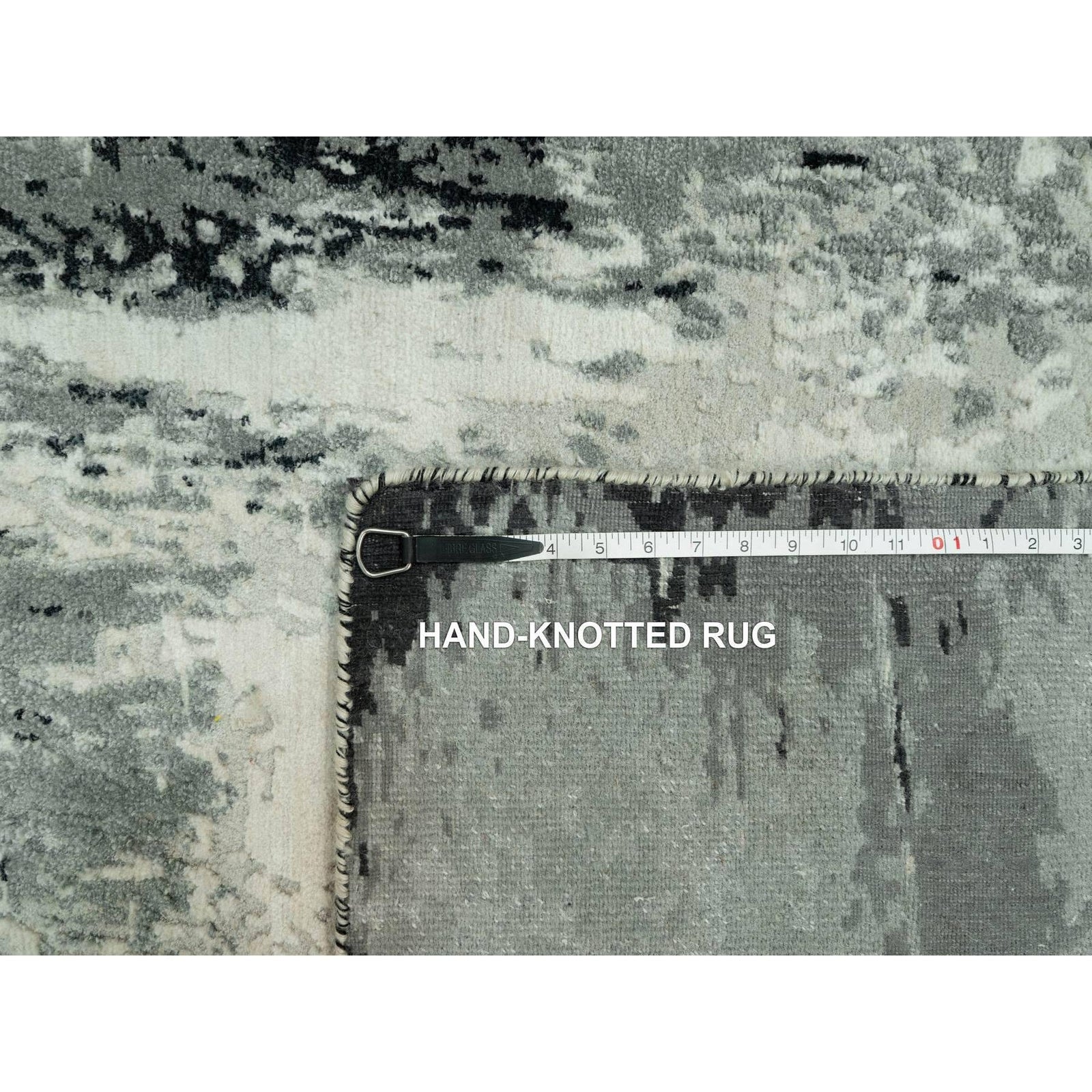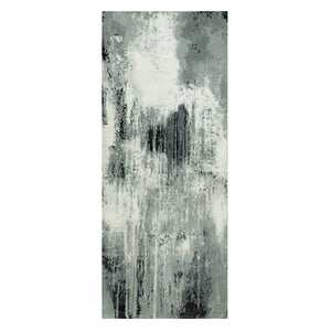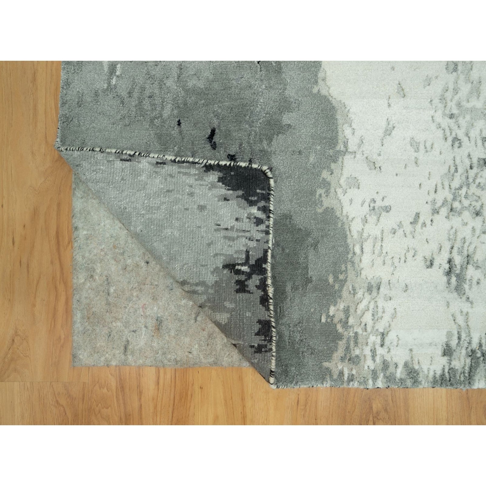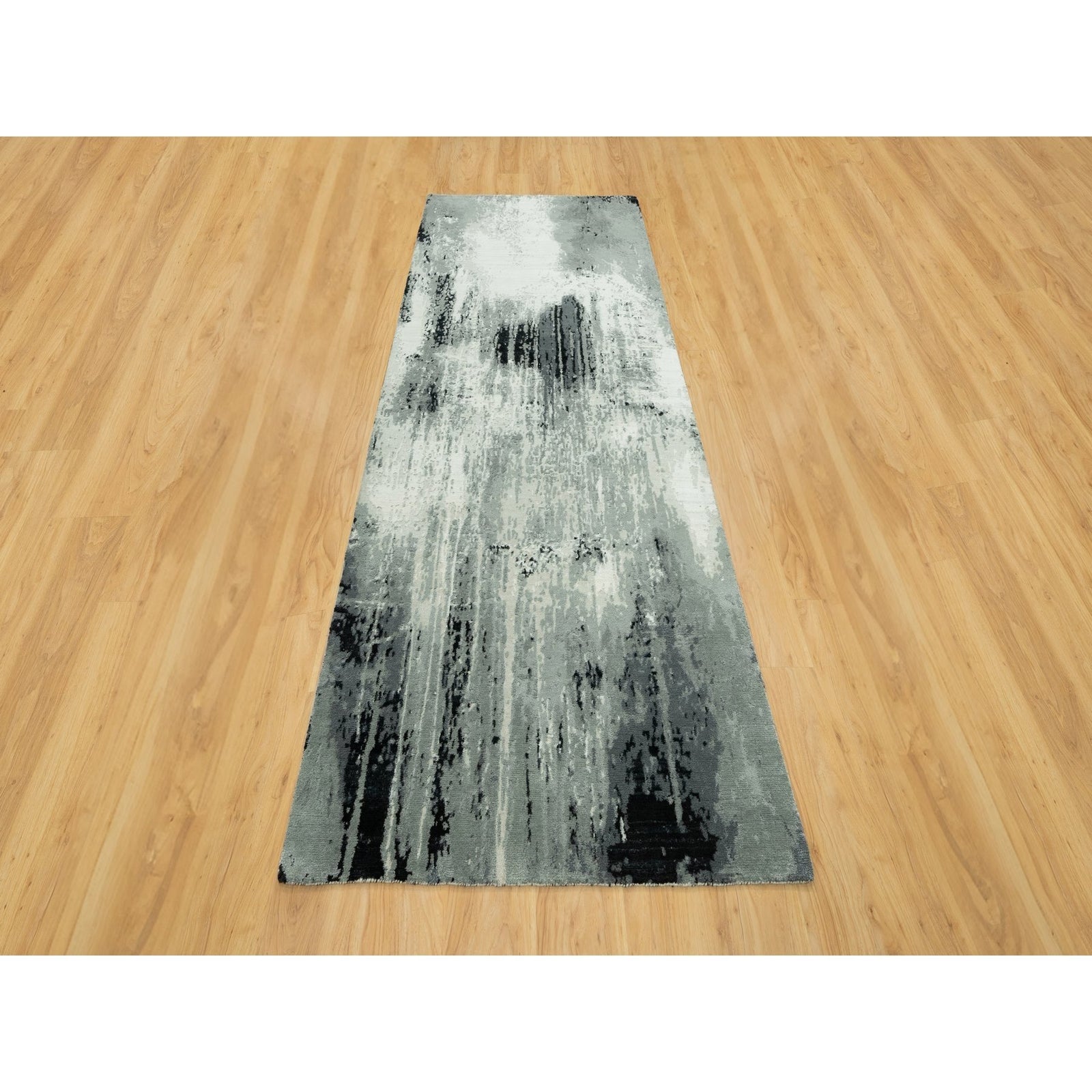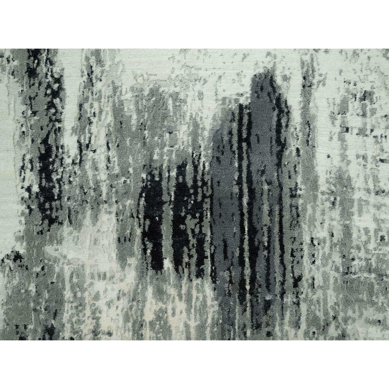 4'X10' Shadow Black Hand Knotted Abstract Wool And Silk Wide Runner Rug