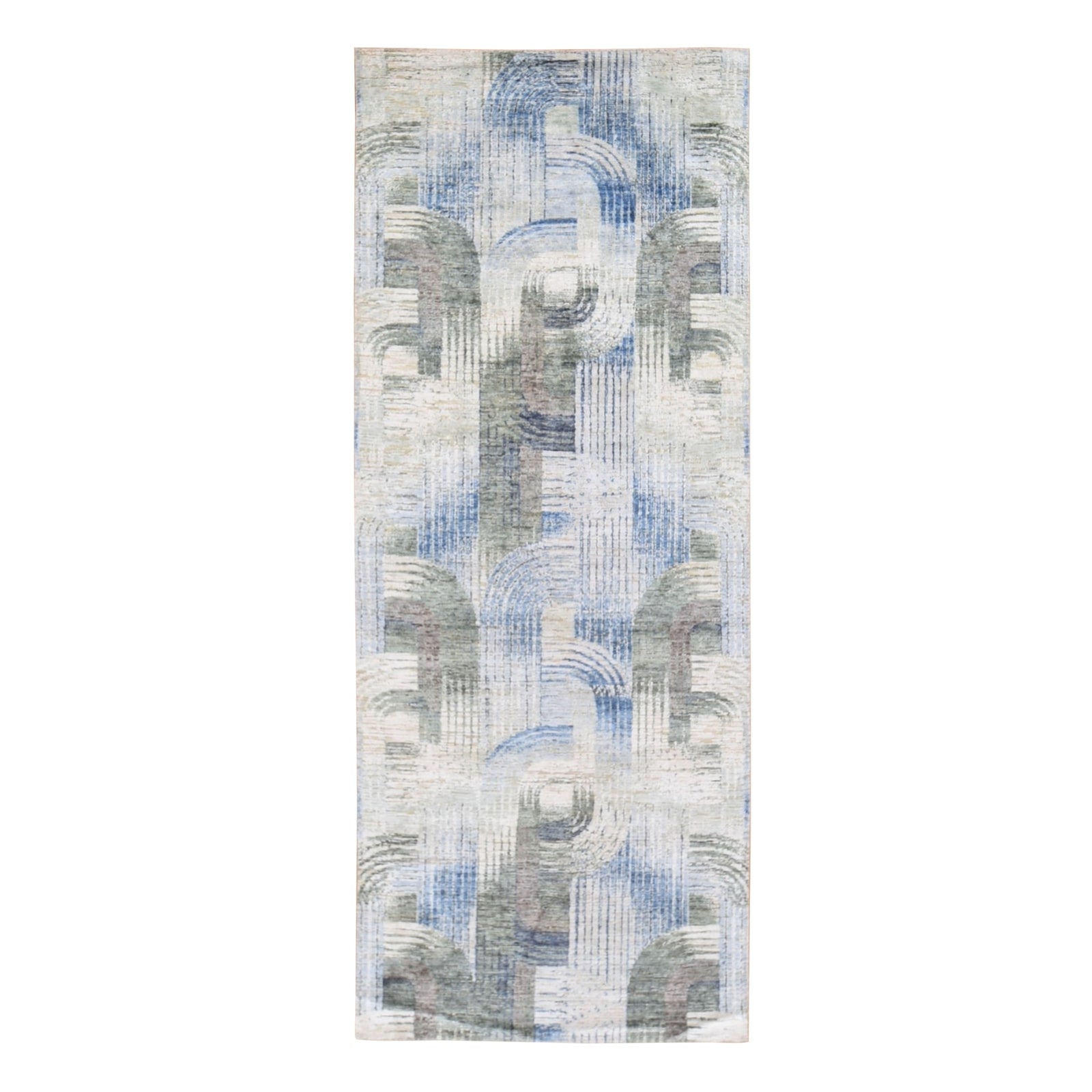 4'X10'2" The Intertwined Passage Wide Runner Silk With Textured Wool Rug