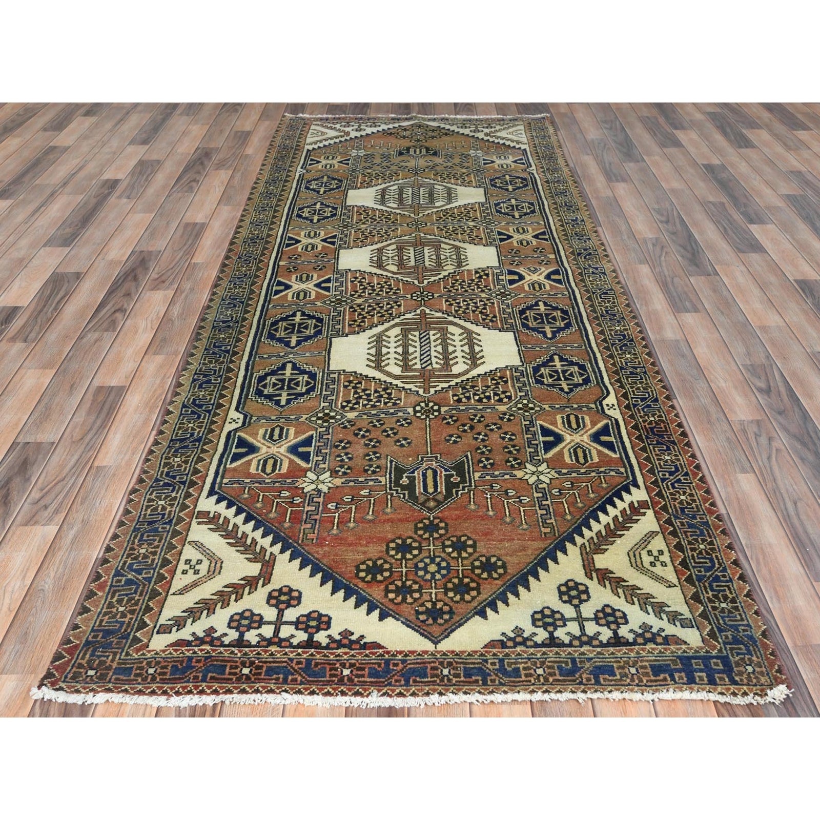 4'X10'Mocha Brown Farsian Heris Hand Knotted Wool Cropped Thin Runner Rug