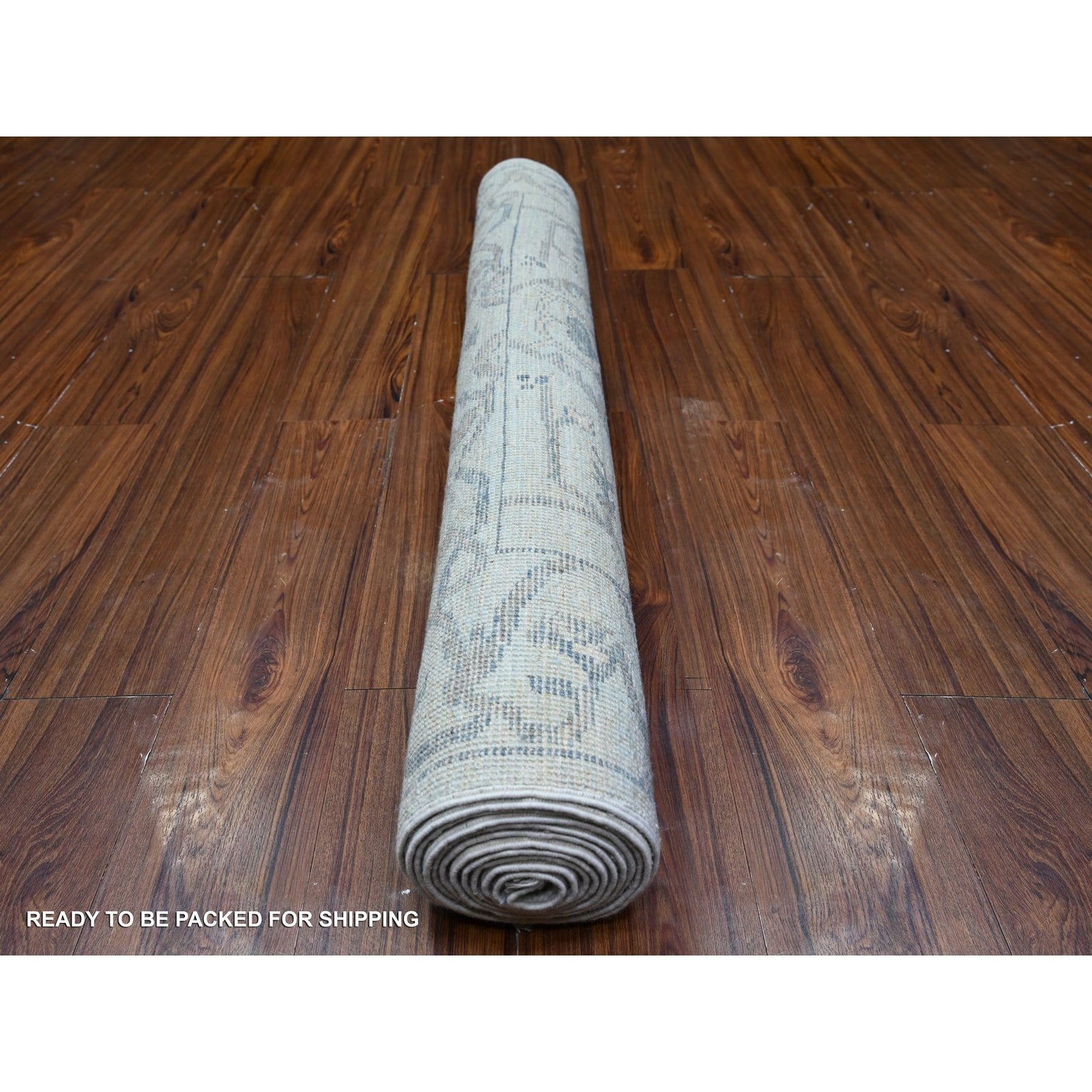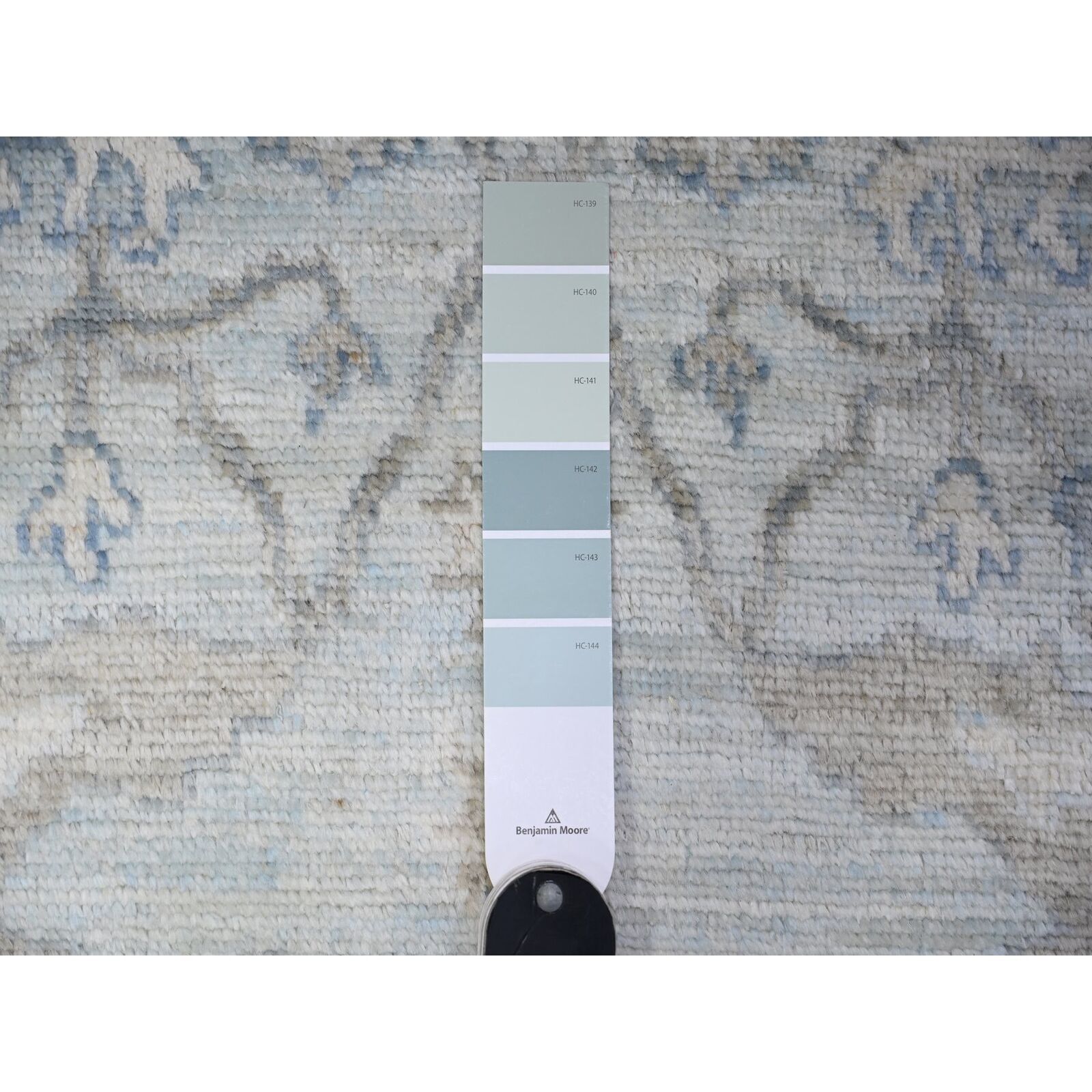 4'X11'10" Blue Oushak All Over Pattern Shiny Wool Hand Knotted Runner Rug