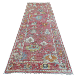 4'X11'10" Red Hand Knotted Afghan Angora Oushak Wool Oriental Rug