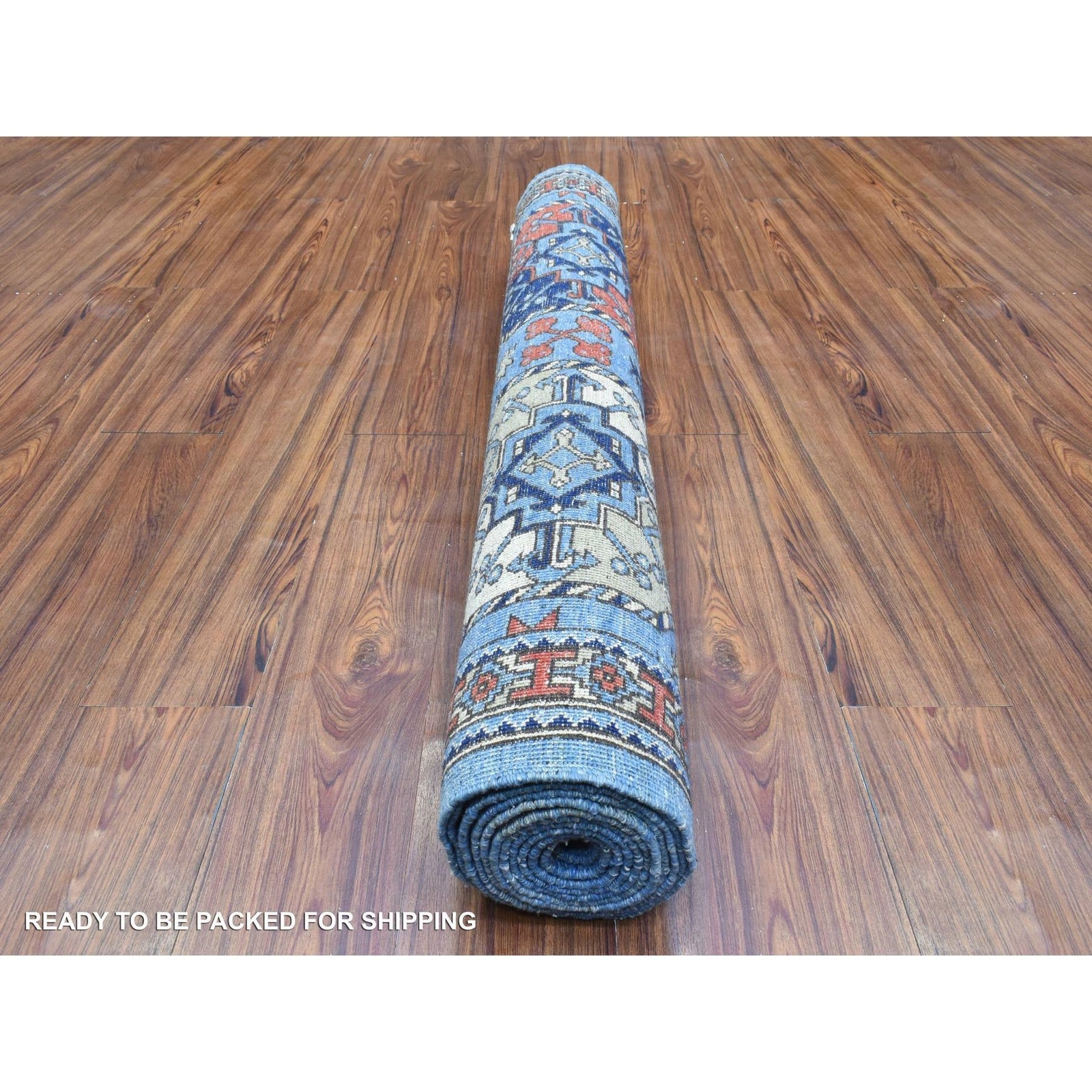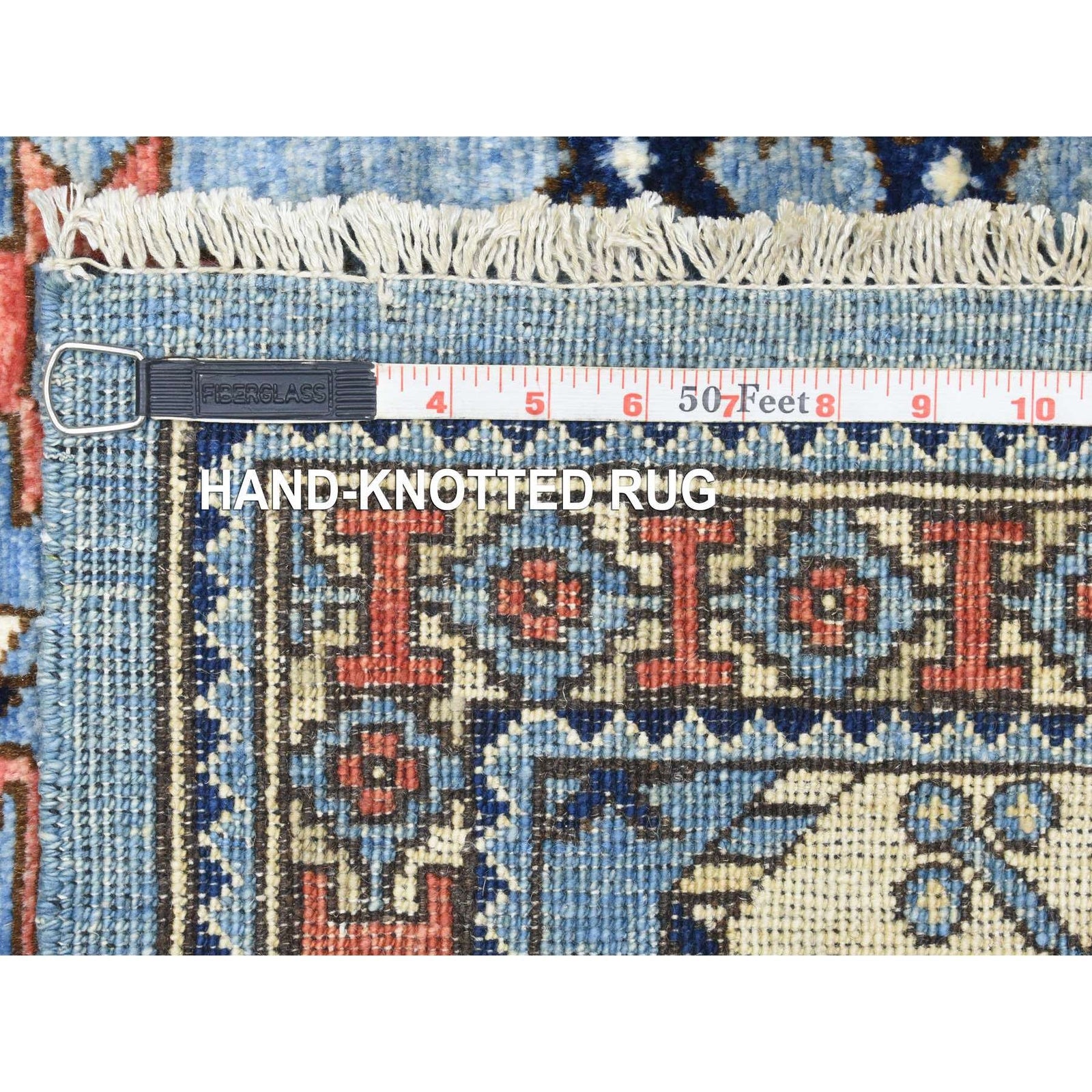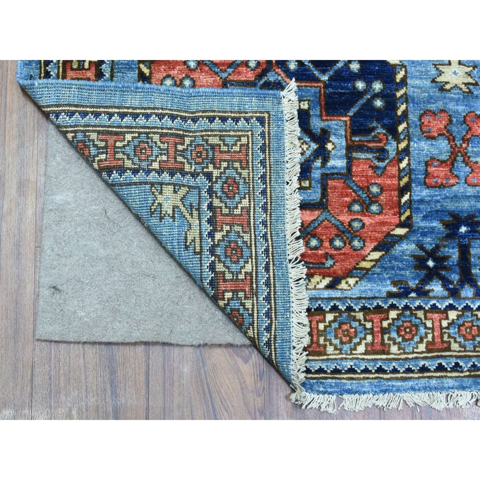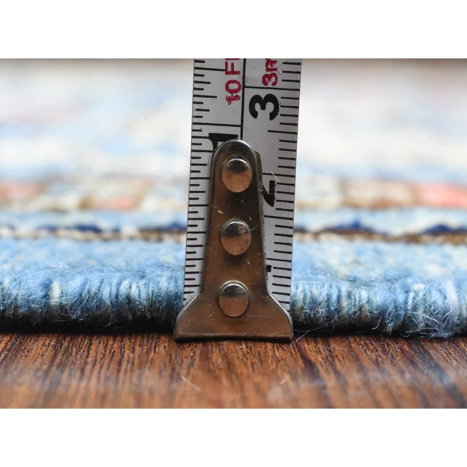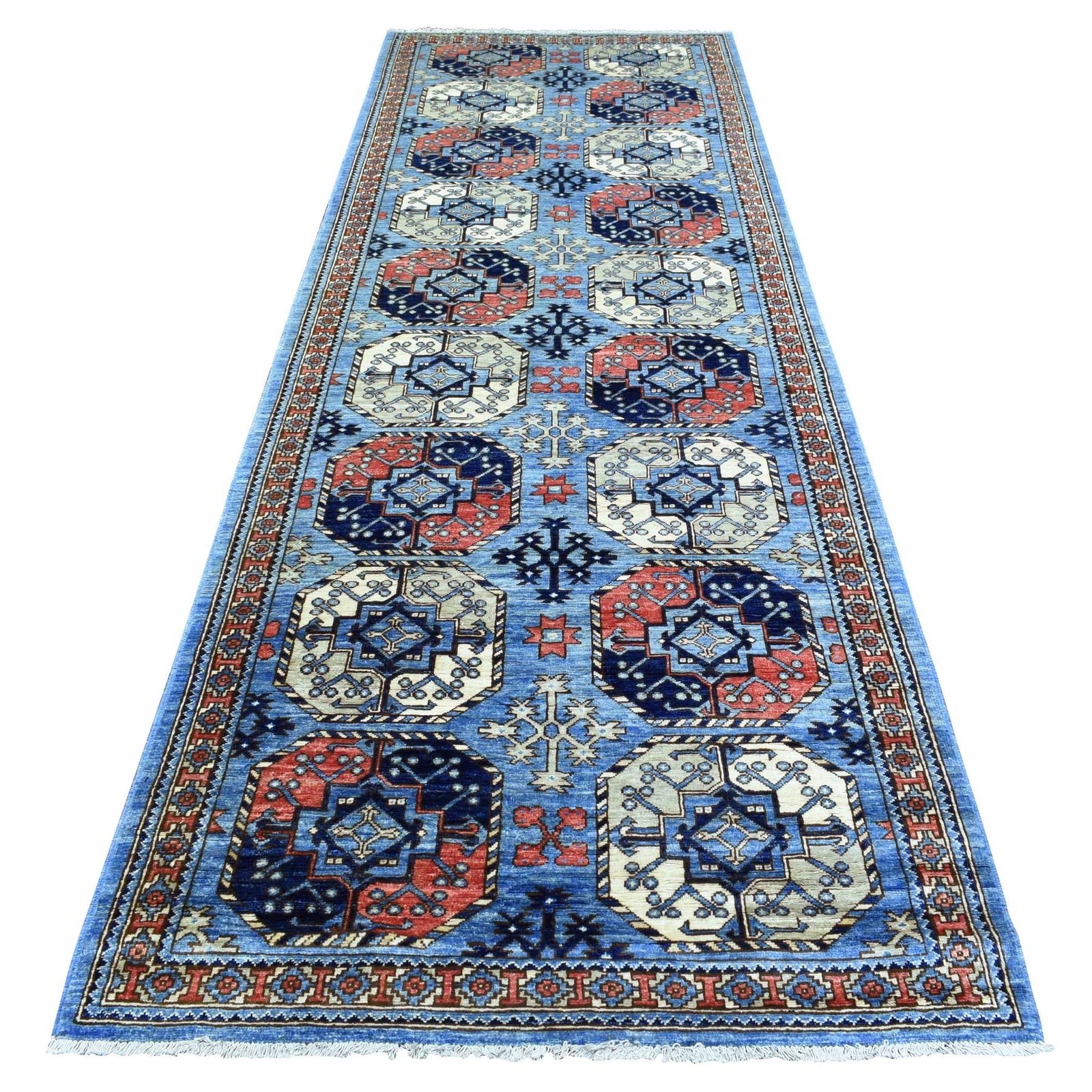 4'X11'8" Blue Pure Wool Hand Knotted Afghan Ersari Wide Runner Rug