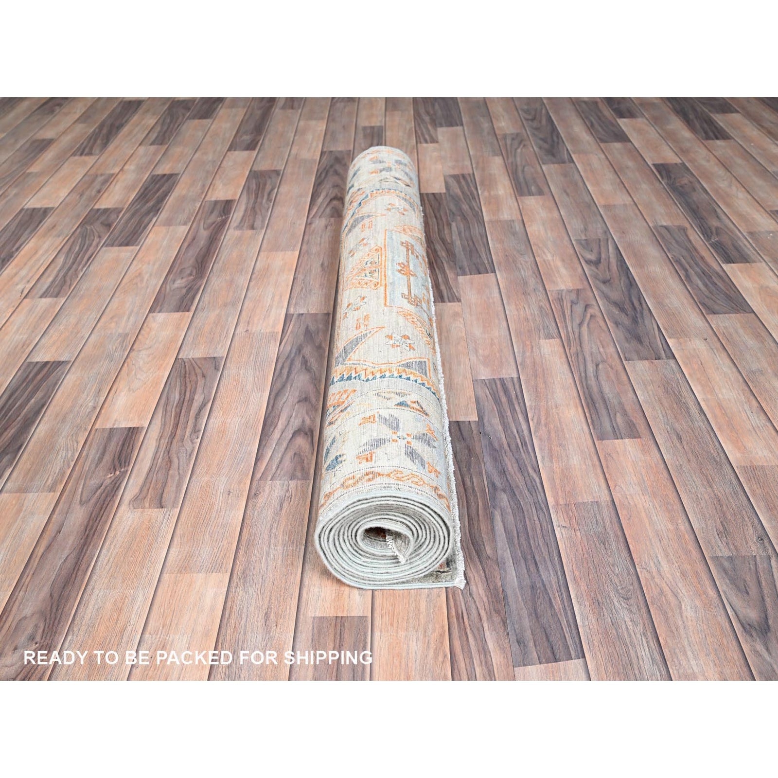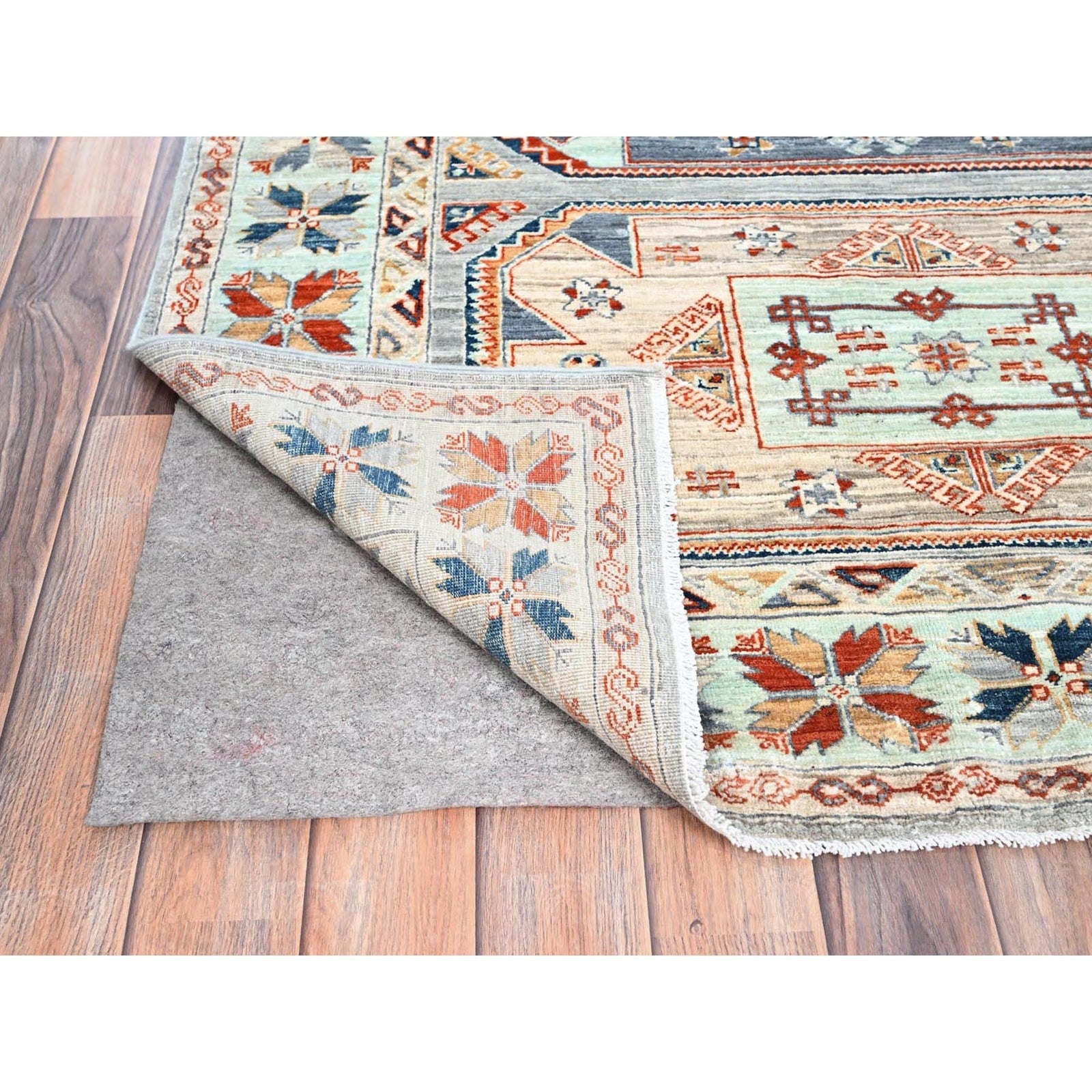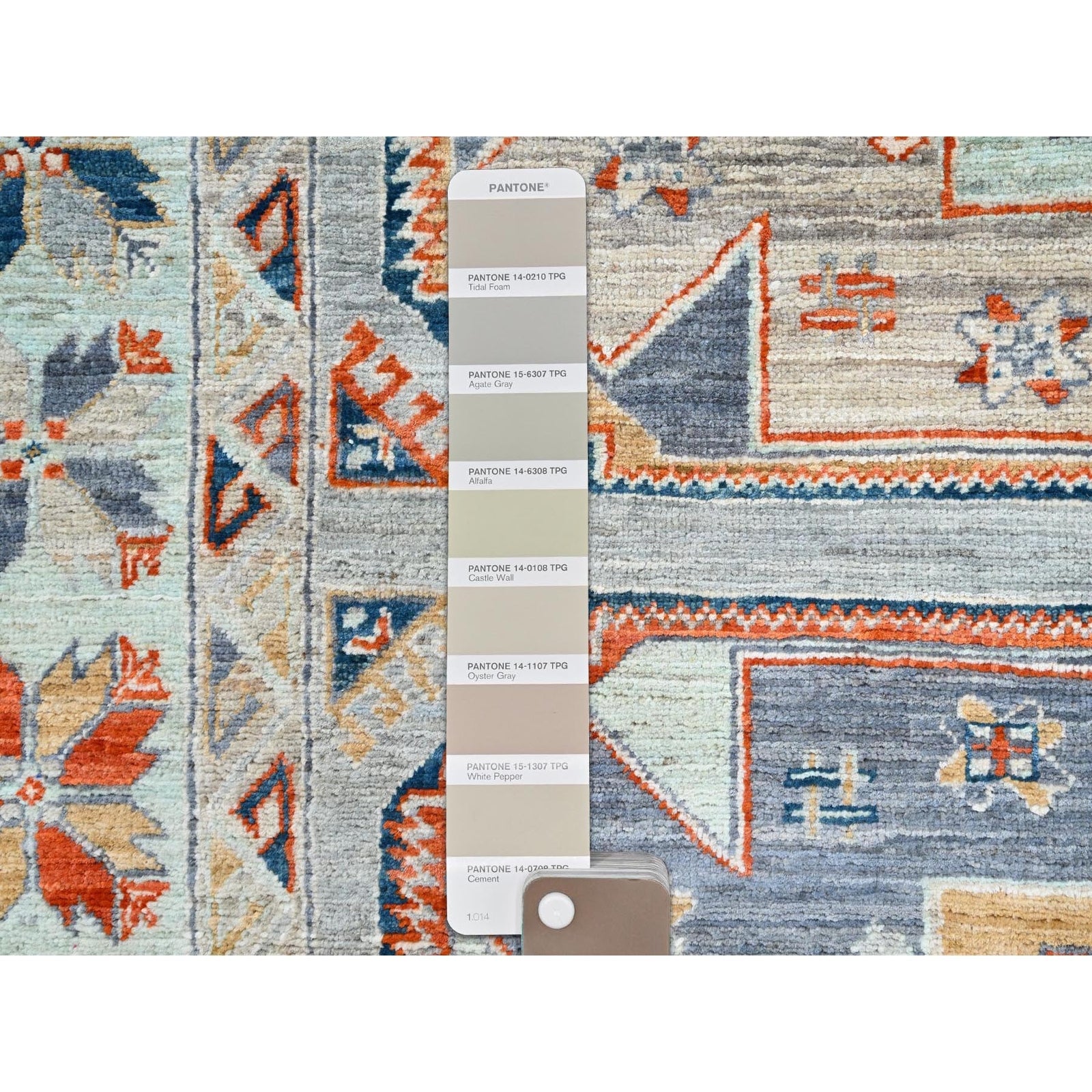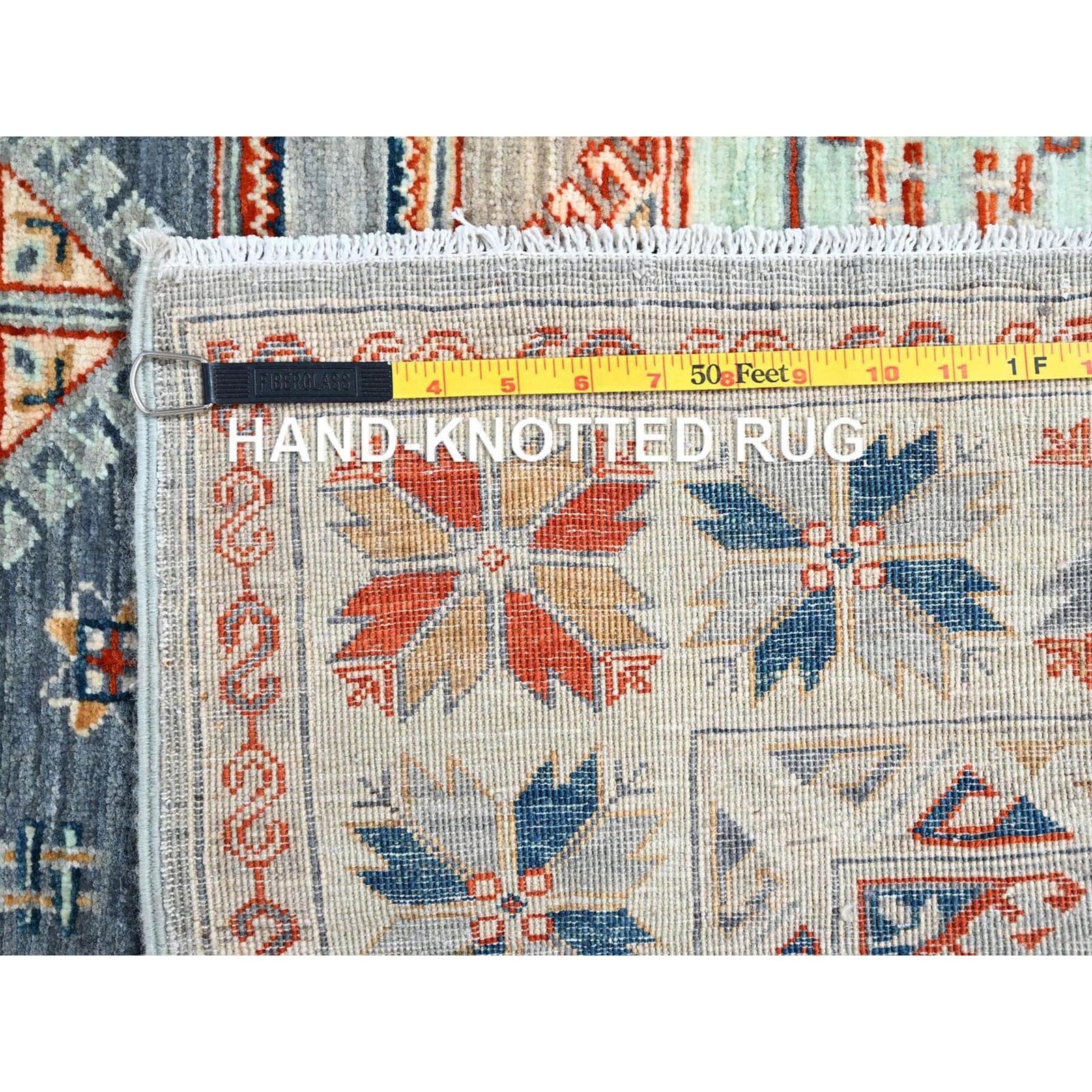 4'X11'9" Blue 200 Kpsi Wool Caucasian Design Hand Knotted Wide Runner Rug