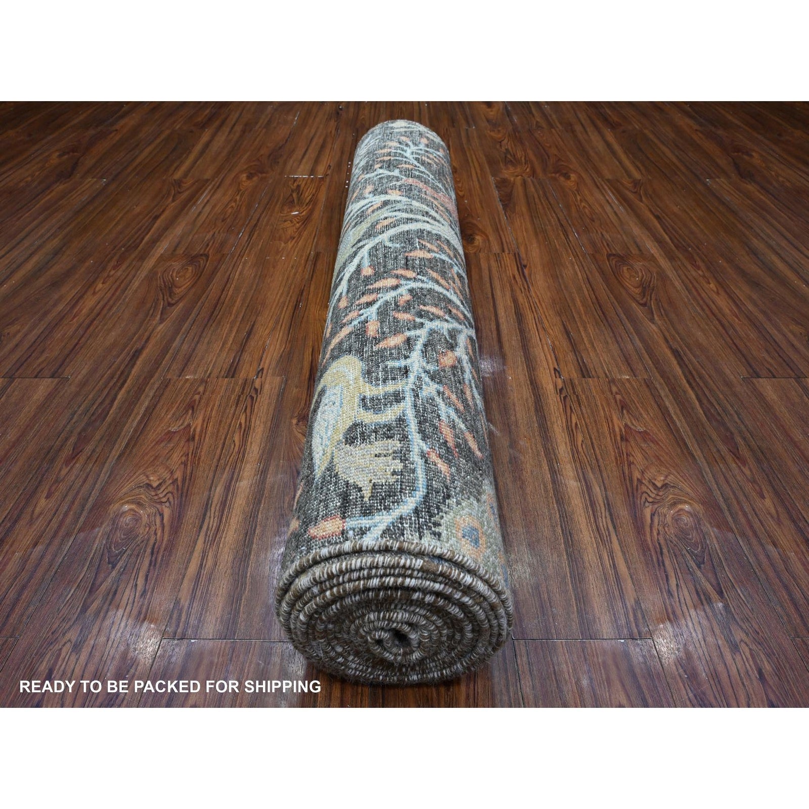4'X15'10" Gray Hand Knotted Wool Birds Paradise Peshawar Wide Runner Rug