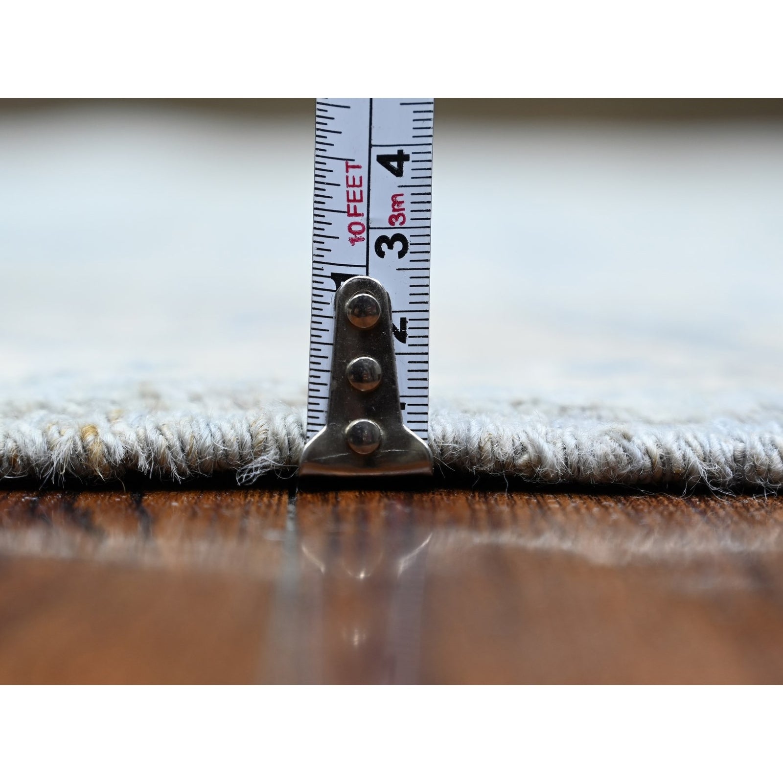 4'X5'9" Coin Gray White Wash Peshawar Wool Hand Knotted Rug