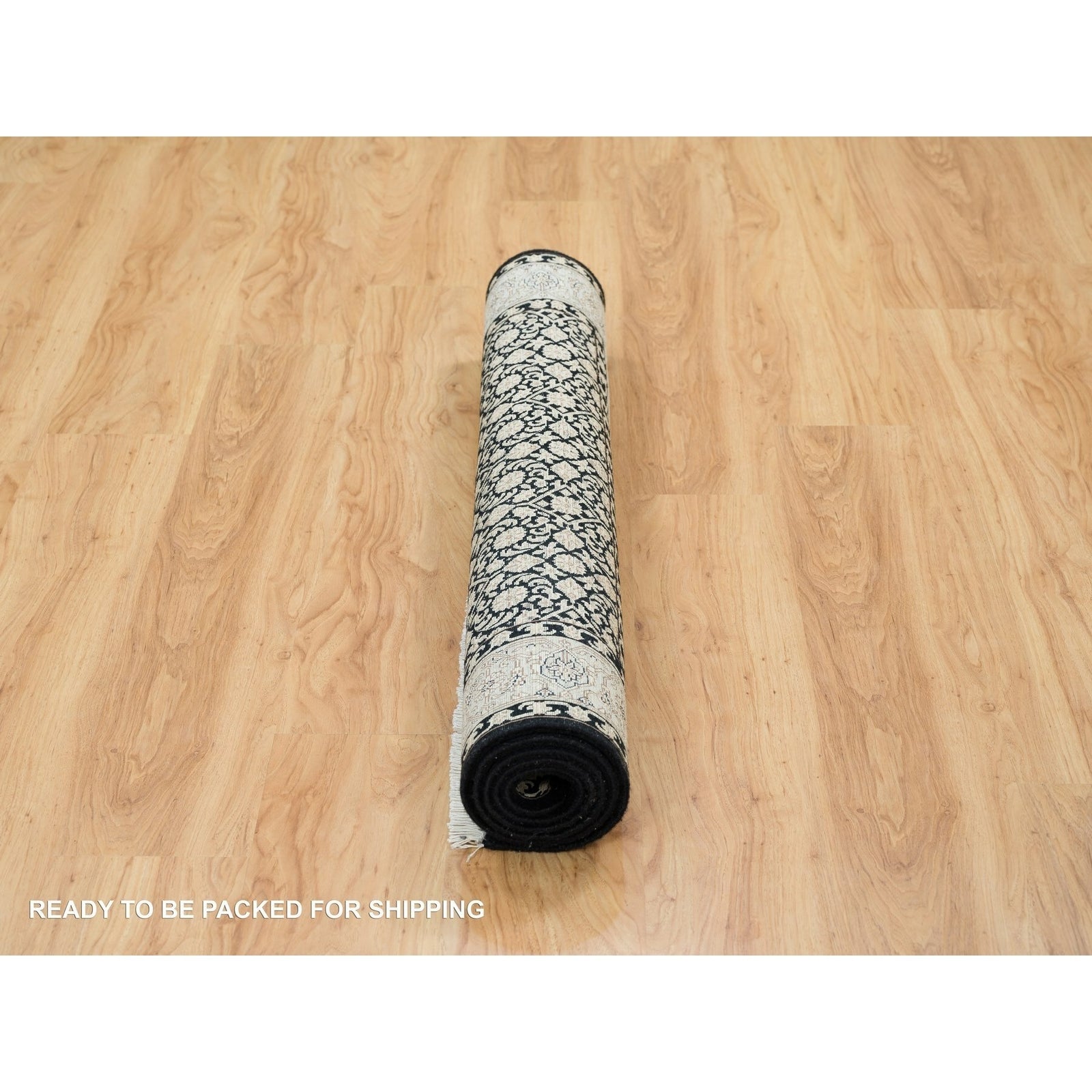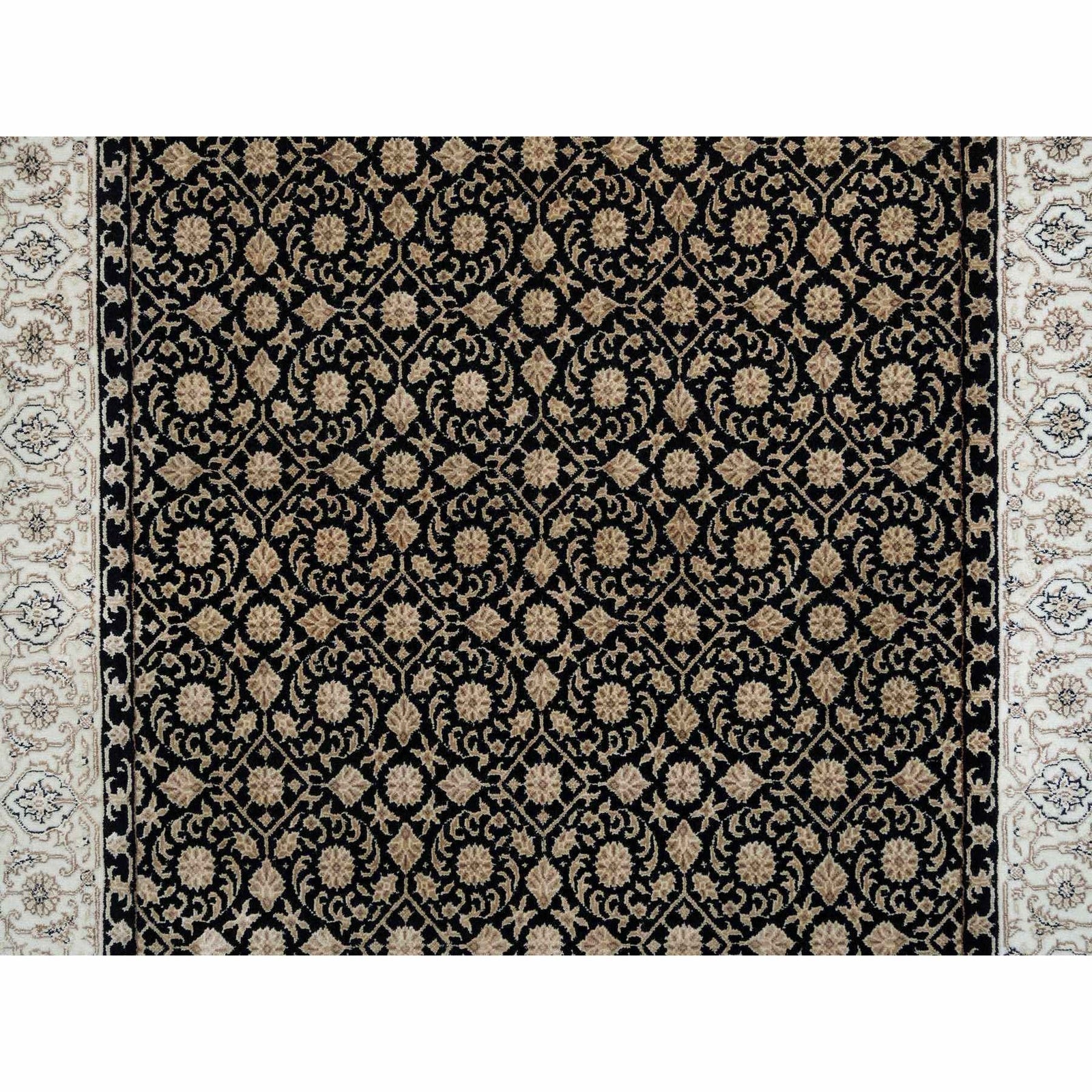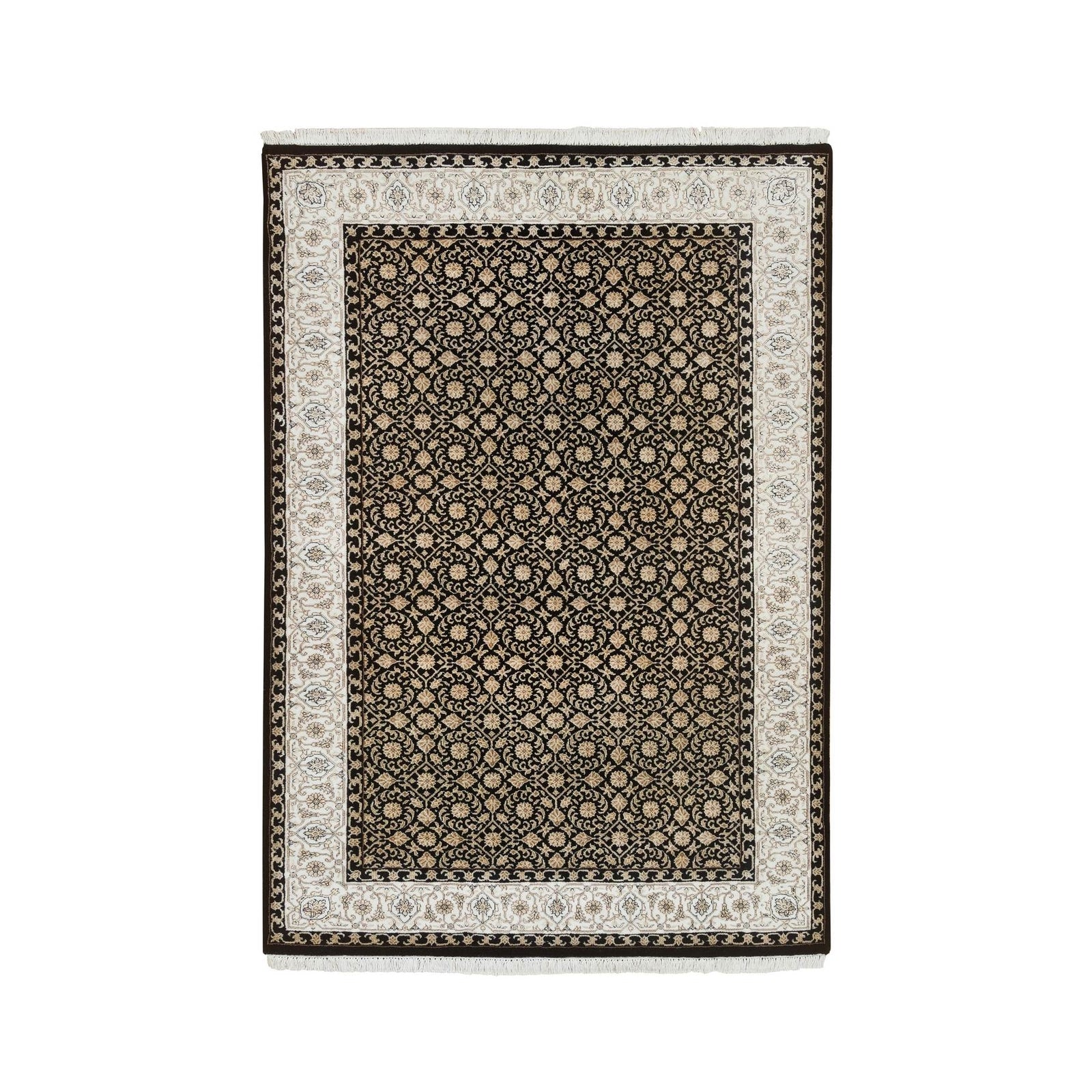 4'X6' Black Herrita Design 250 Kpsi Soft Wool Hand Knotted Rug