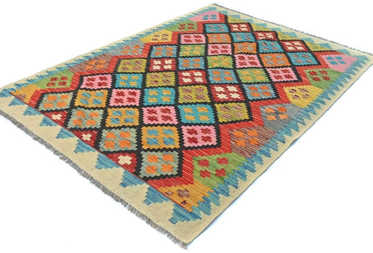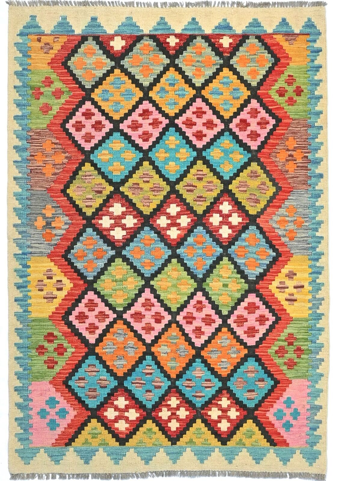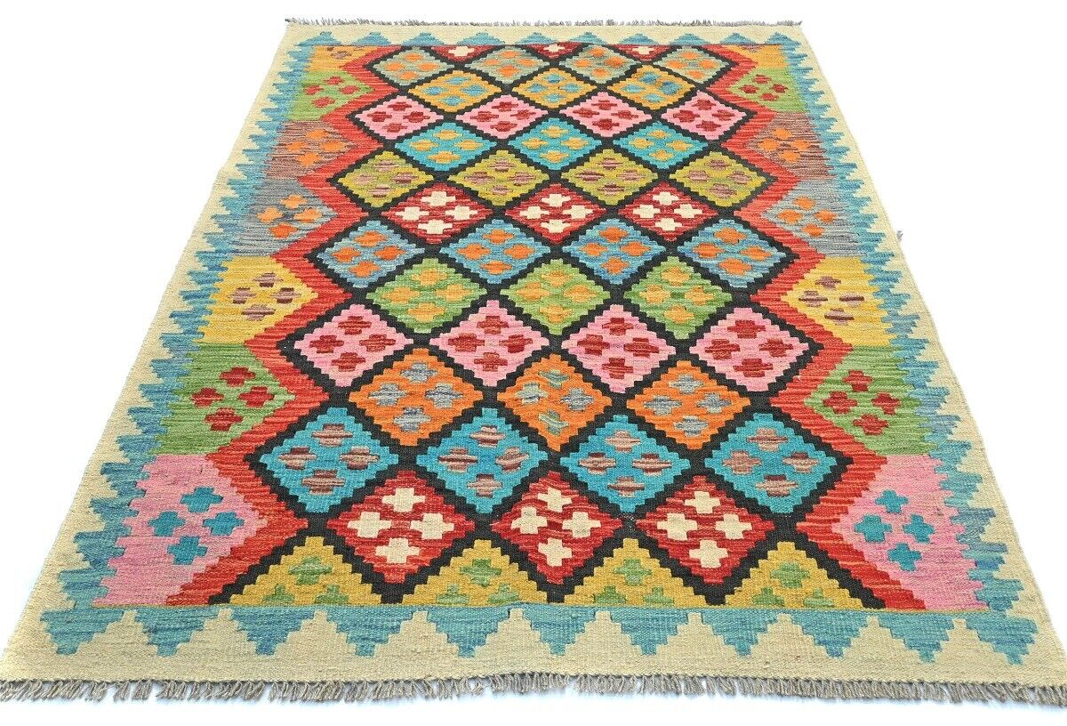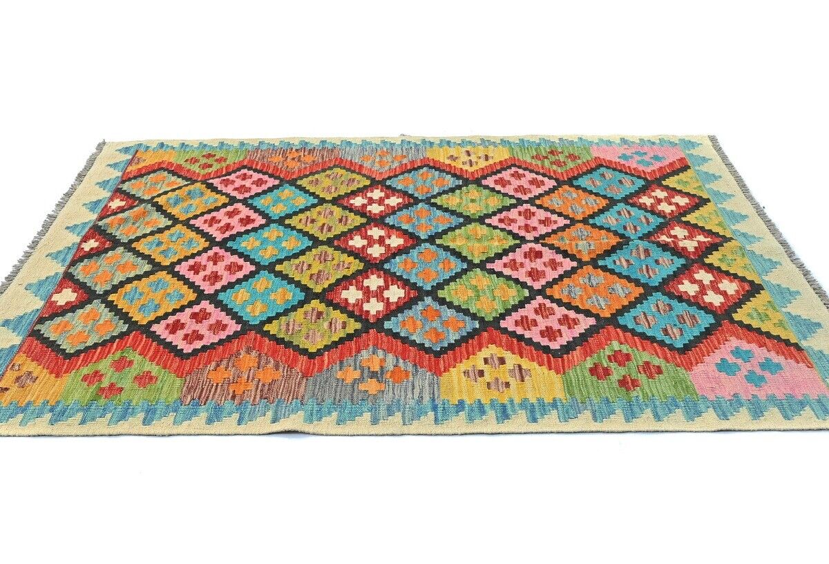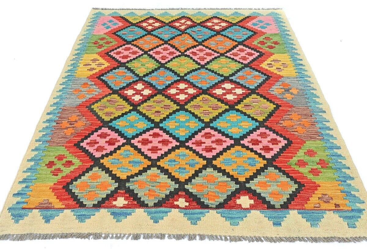4X6 Ft Kilim Oriental Rug Multicolor Geometric
